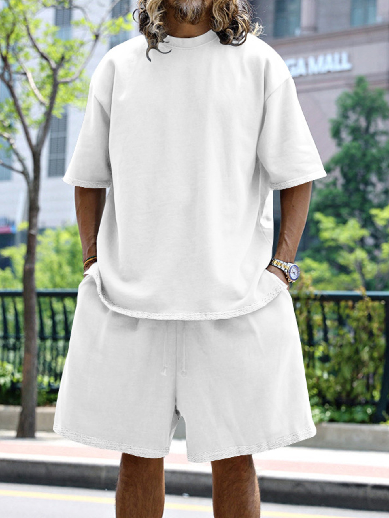 Men's Full Size Round Neck Short Sleeve Top and Shorts Set Plus Size