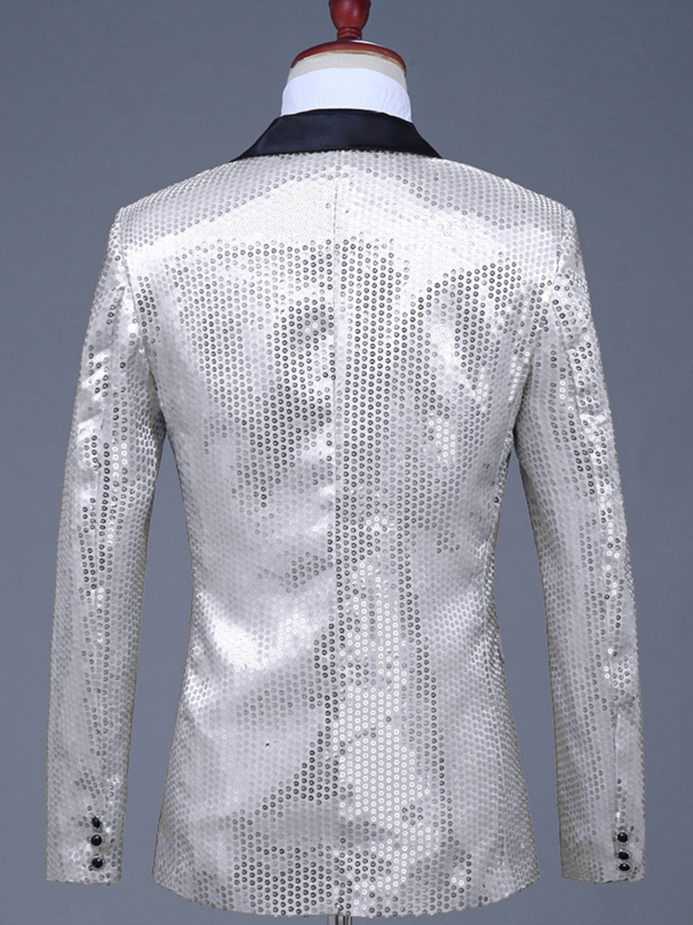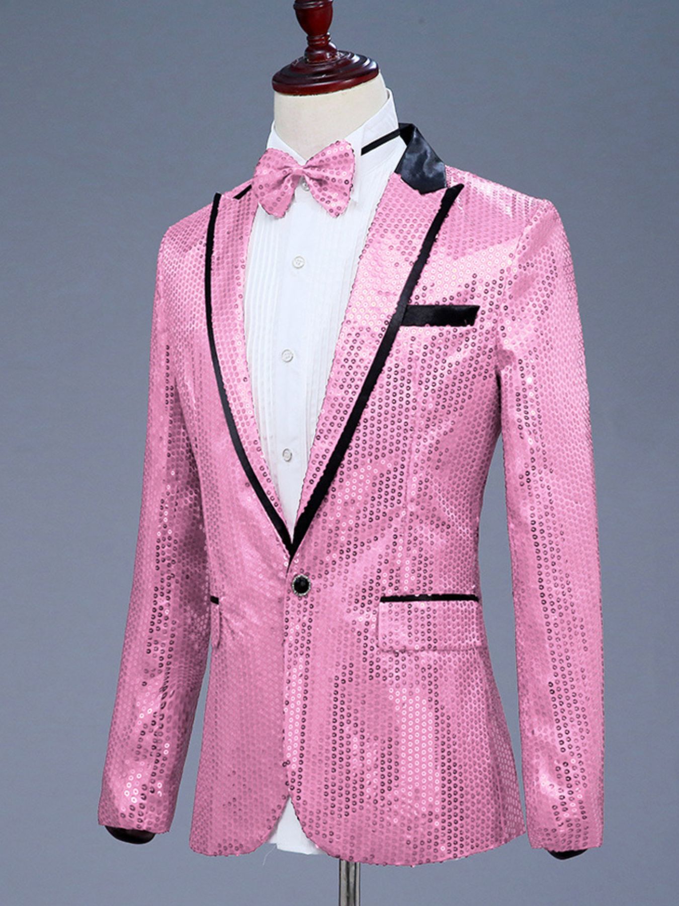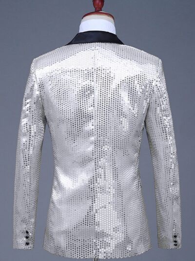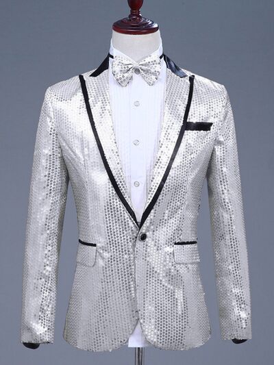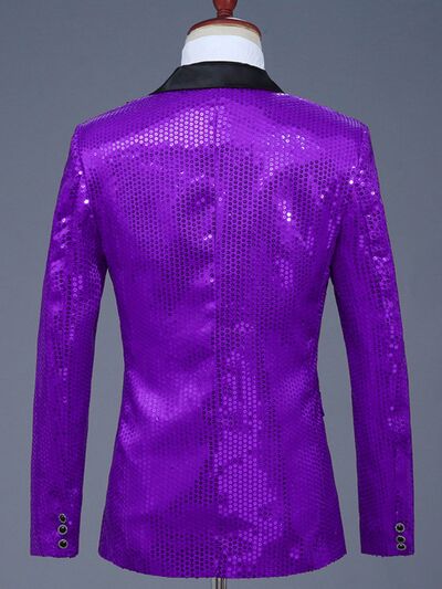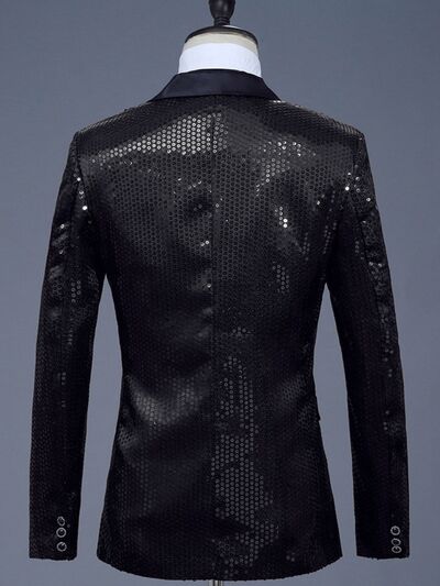 Men's Full Size Sequin One Button Long Sleeve Blazer Plus Size
