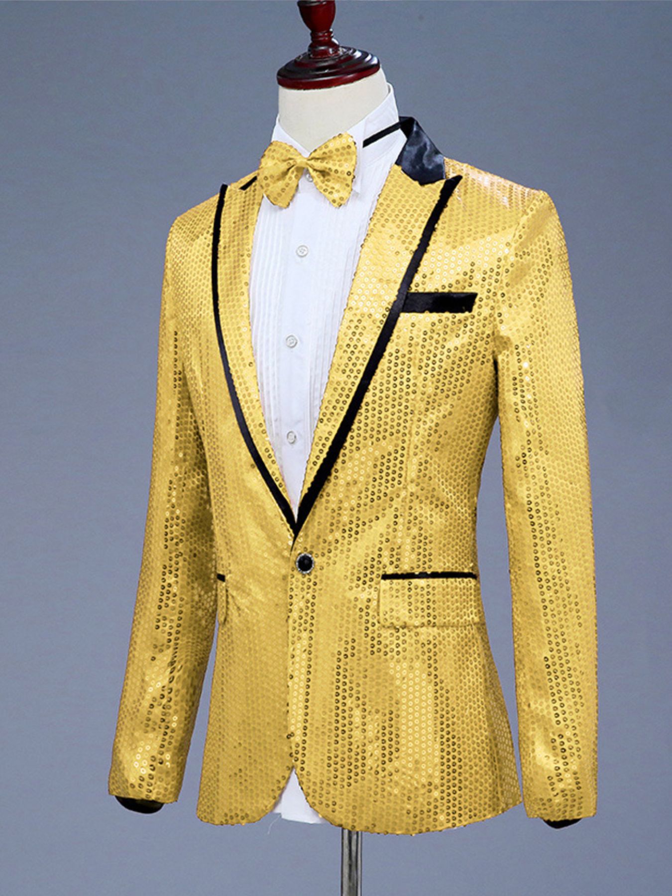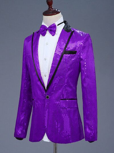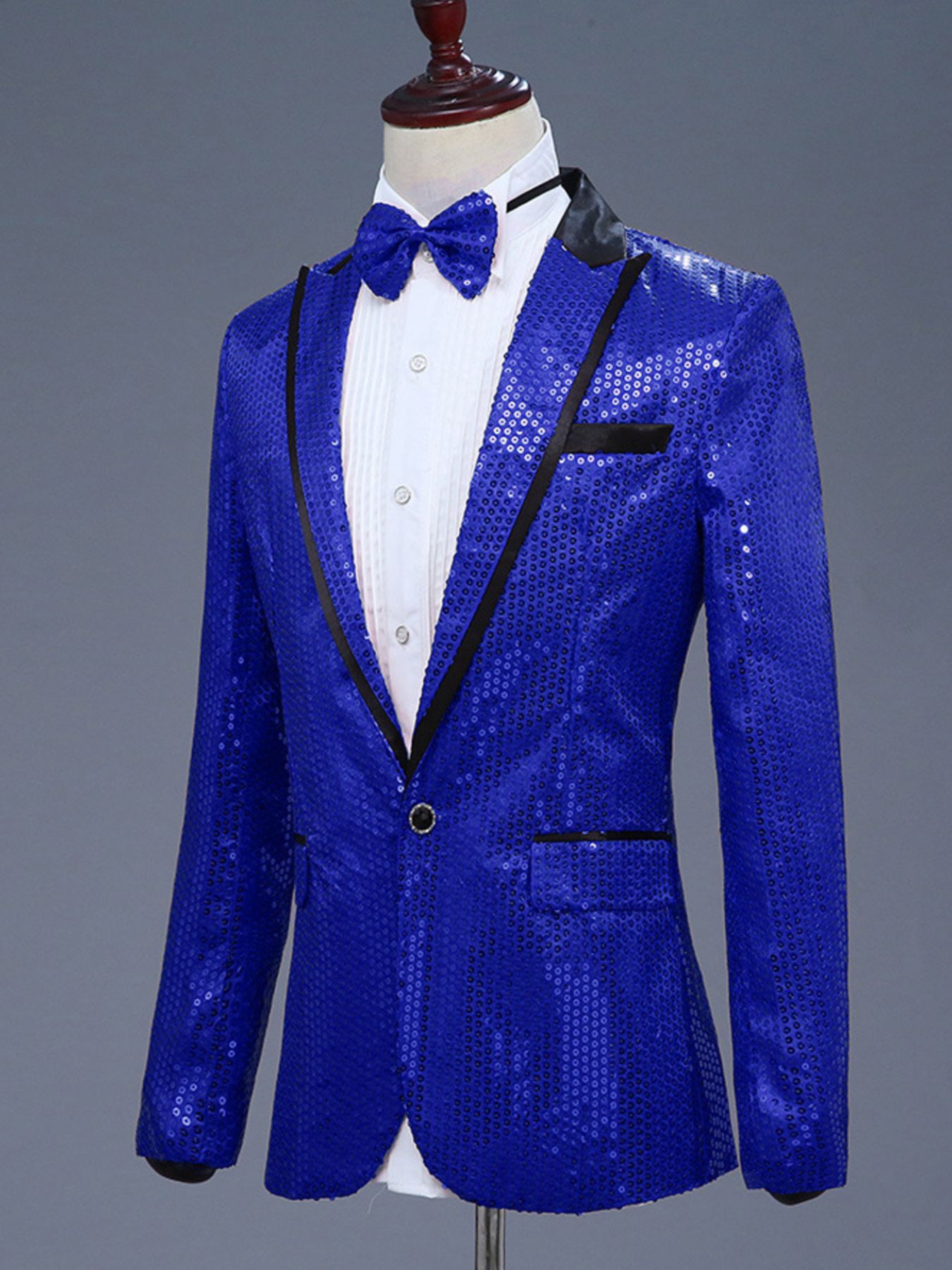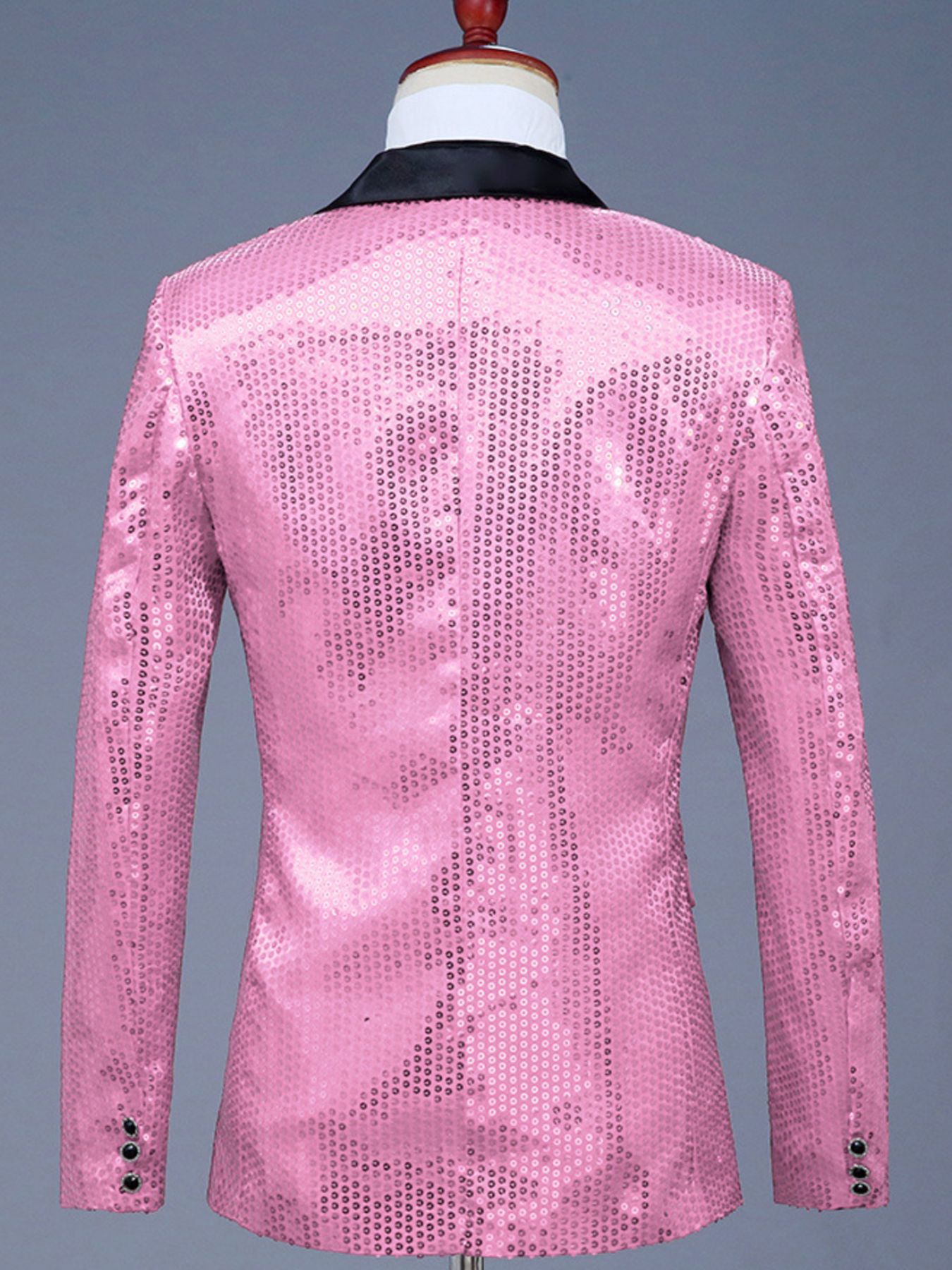 Men's Full Size Sequin One Button Long Sleeve Blazer Plus Size