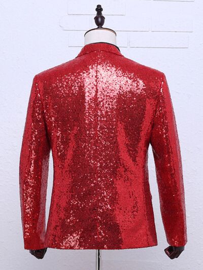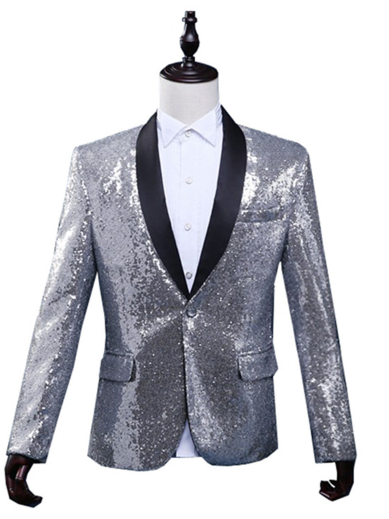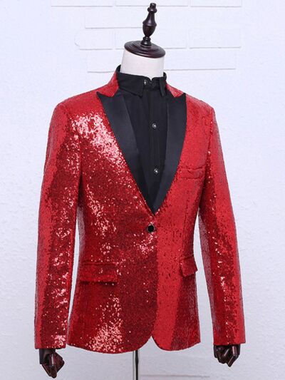 Men's Full Size Sequin One Button Long Sleeve Blazer Plus Size