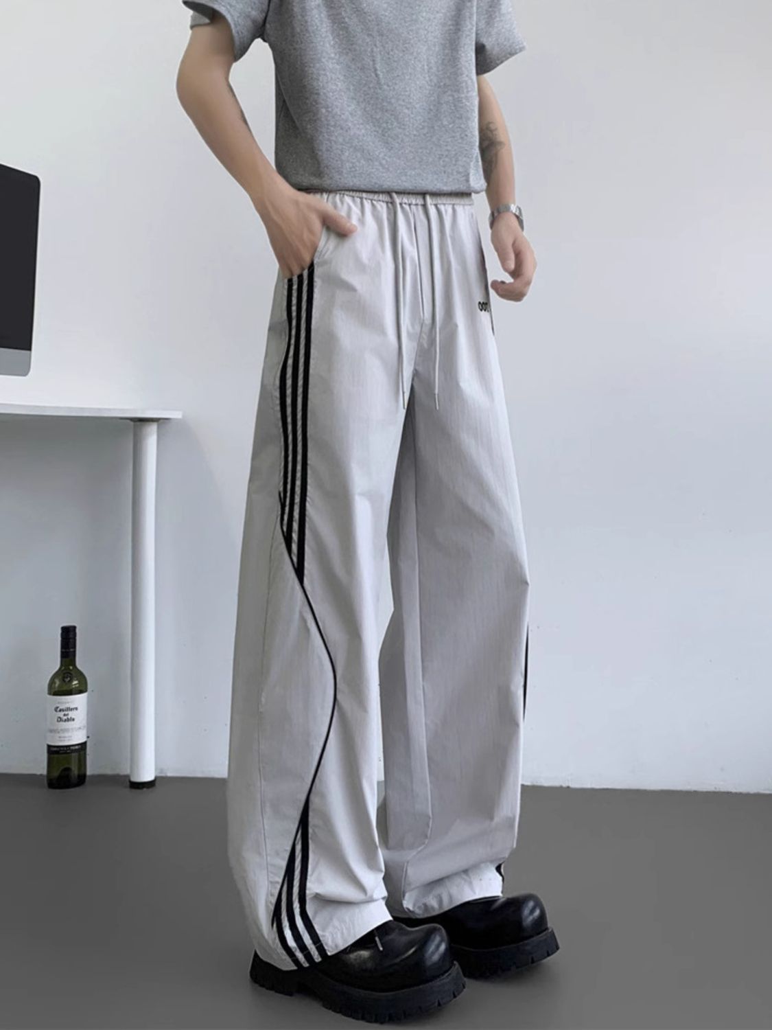 Men's Full Size Side Striped Wide Leg Pants Plus Size