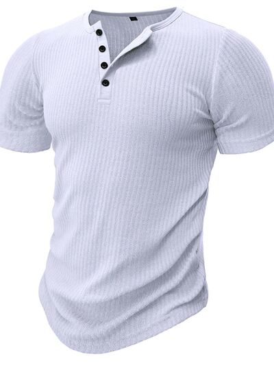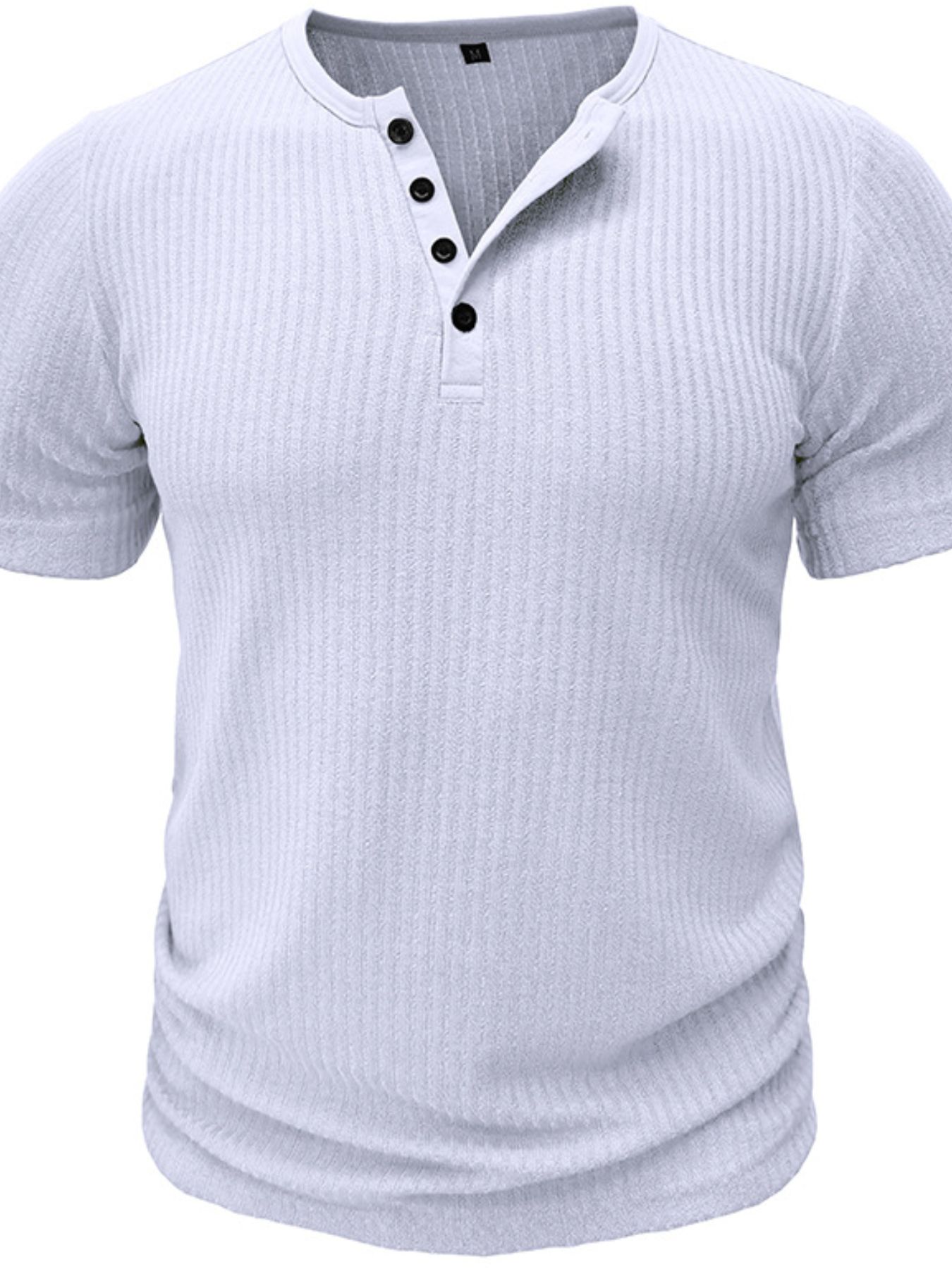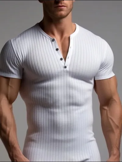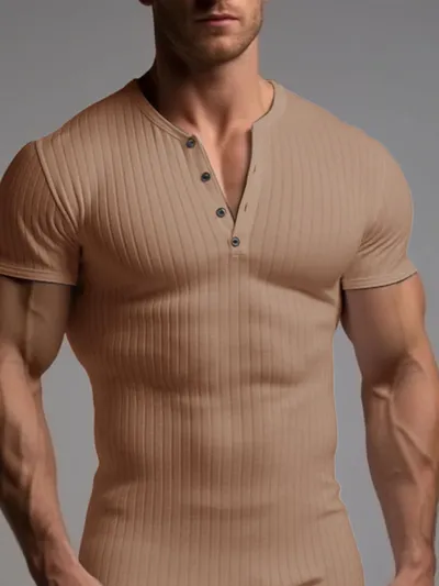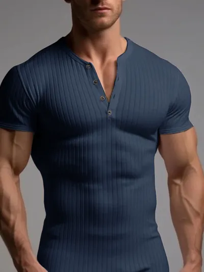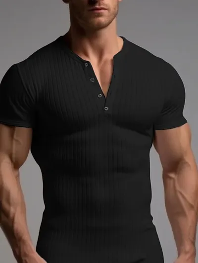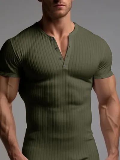 Men's Full Size Slim Fit Ribbed Henley Polo Shirt Plus Size