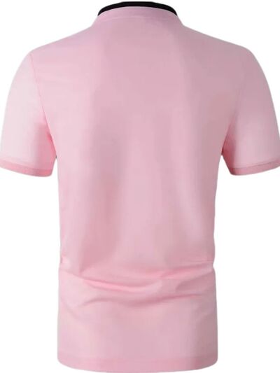 Men's Full Size Stand Collar Contrast Short Sleeve Polo Plus Size