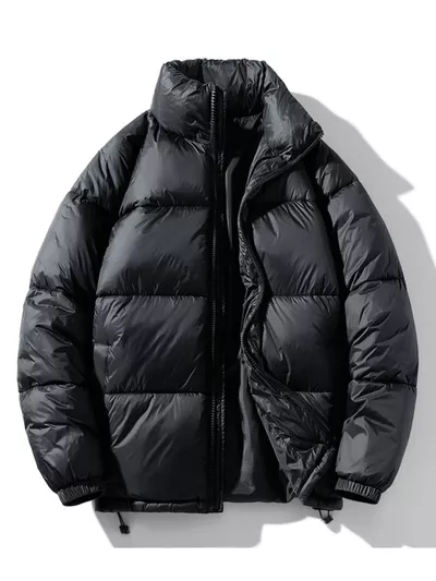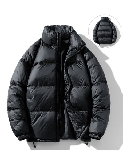 Men's Full Size Stand Collar Quilted Puffer Jacket with Drawstring Hem Plus Size