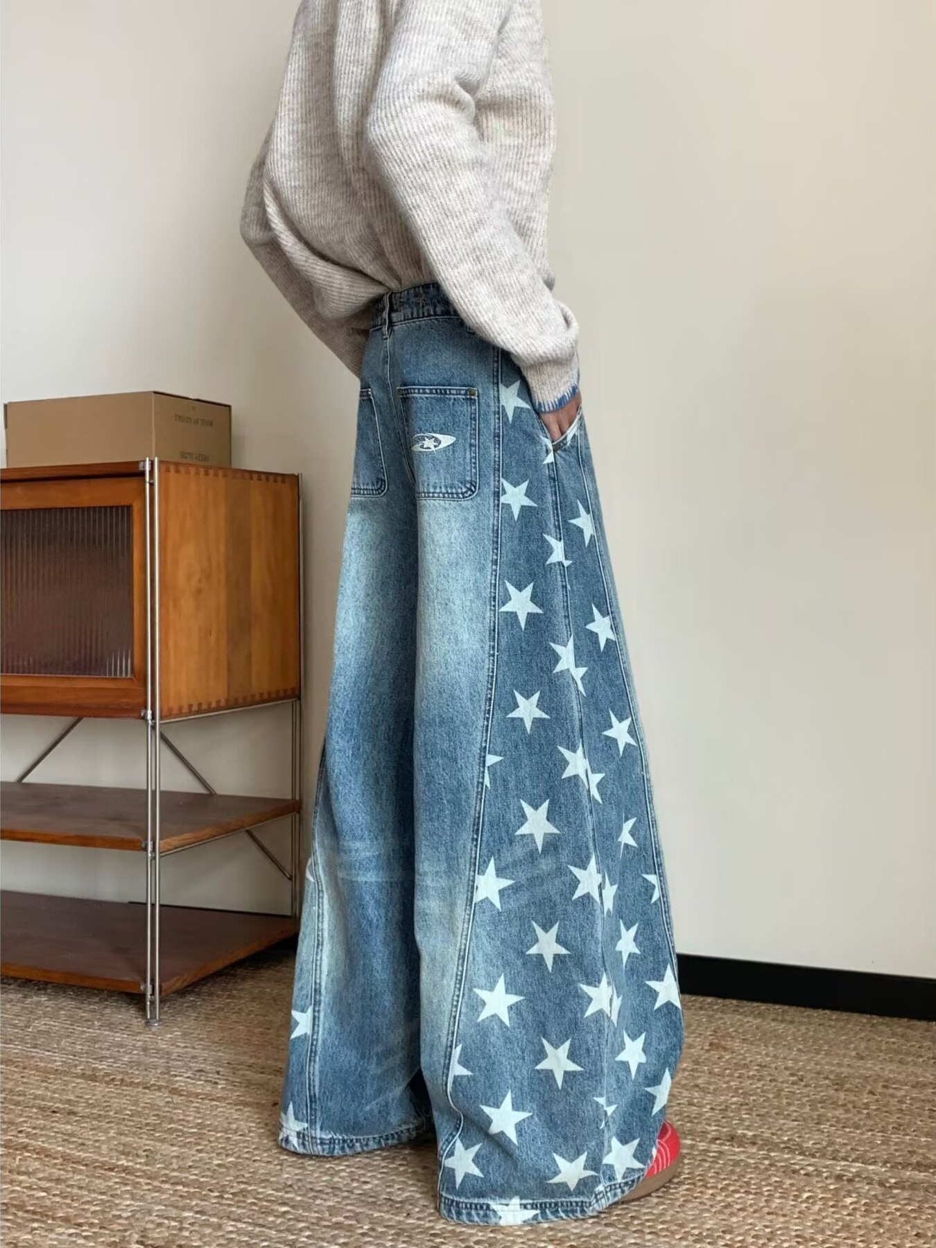 Men's Full Size Star Print Wide Leg Jeans Plus Size