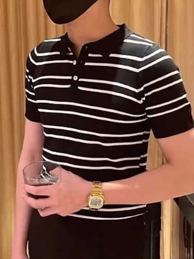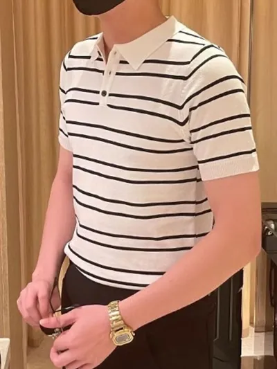 Men's Full Size Striped Button Detail Short Sleeve Polo Plus Size