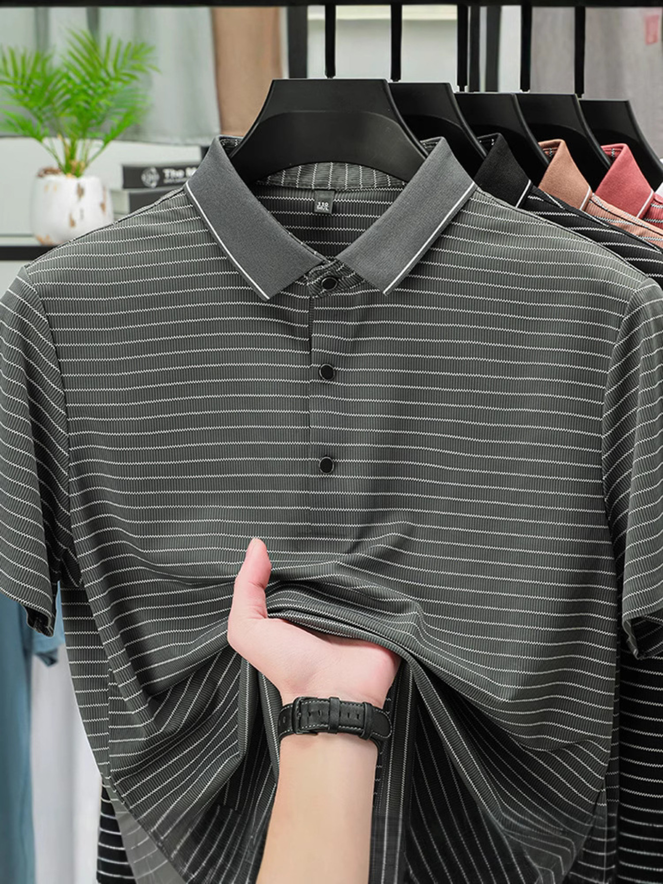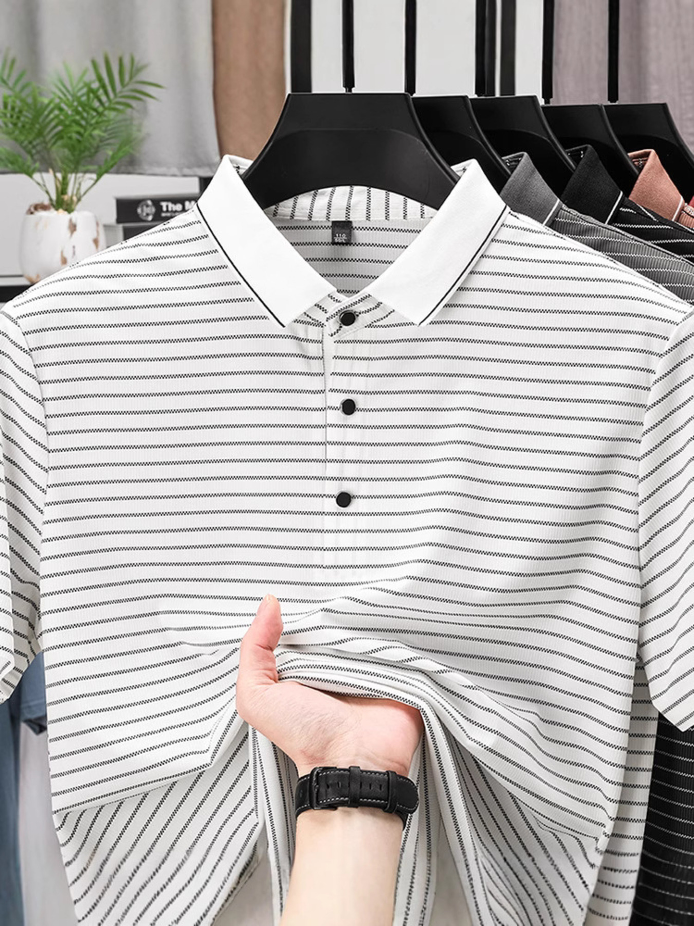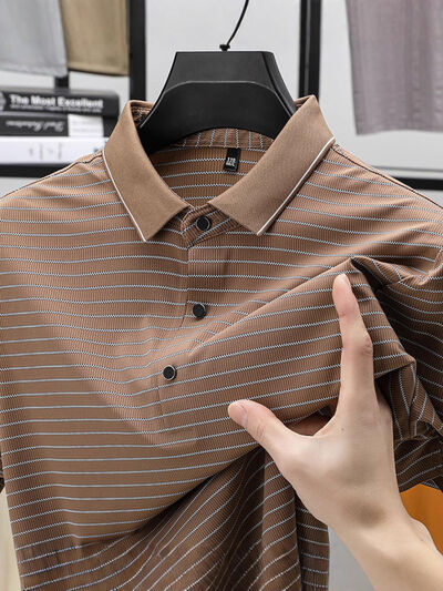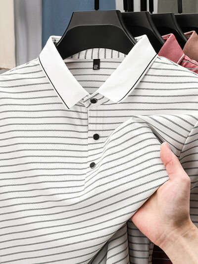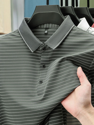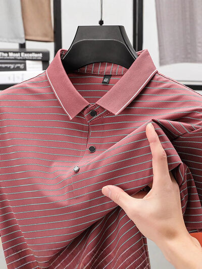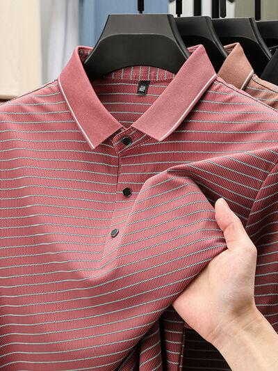 Men's Full Size Striped Button Detail Short Sleeve Polo Plus Size