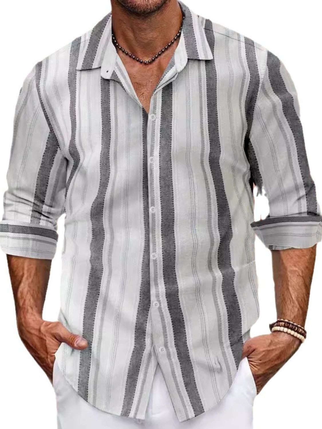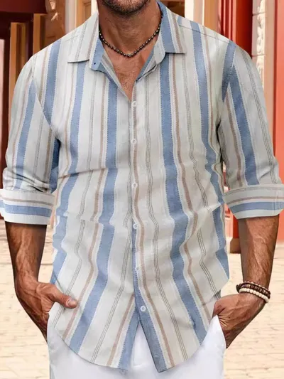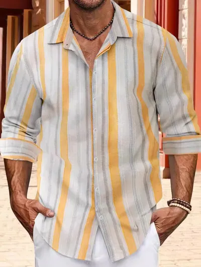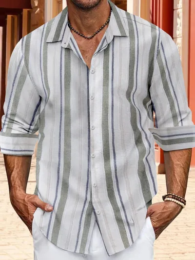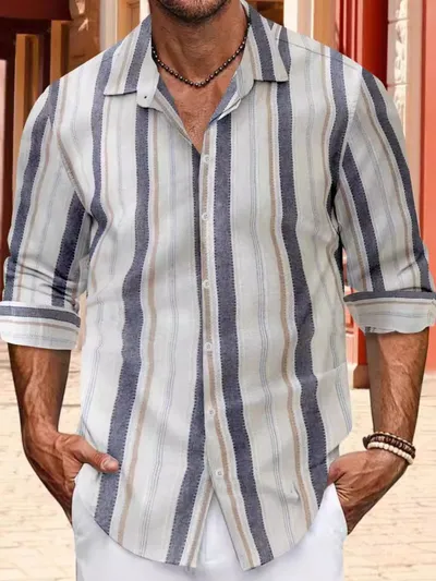 Men's Full Size Striped Button Up Long Sleeve Shirt Plus Size