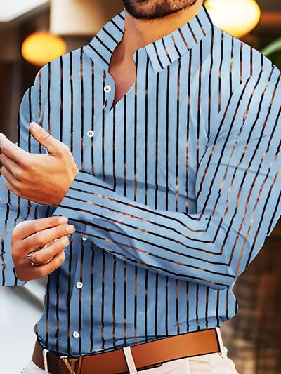 Men's Full Size Striped Button Up Long Sleeve Shirt Plus Size