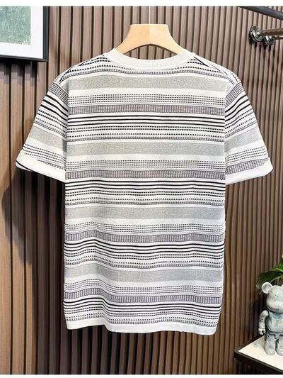 Men's Full Size Striped Round Neck Casual T-Shirt Plus Size