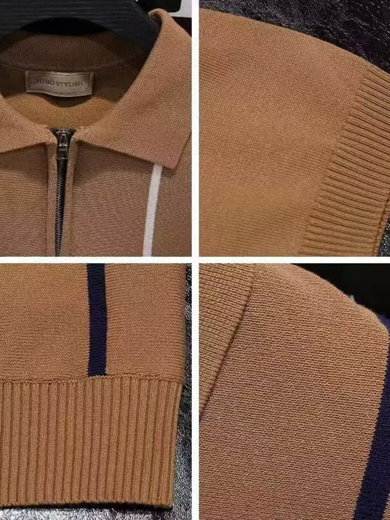 Men's Full Size Striped Zip Collar Short Sleeve Knit Polo Shirt Plus Size