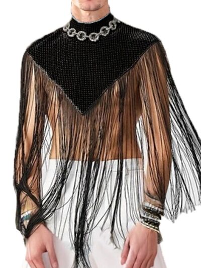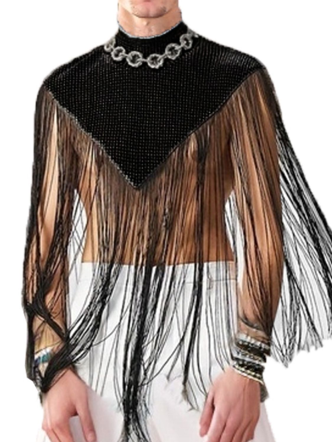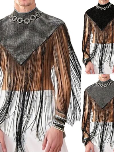 Men's Full Size Tassel Hem Mock Neck Cap Plus Size
