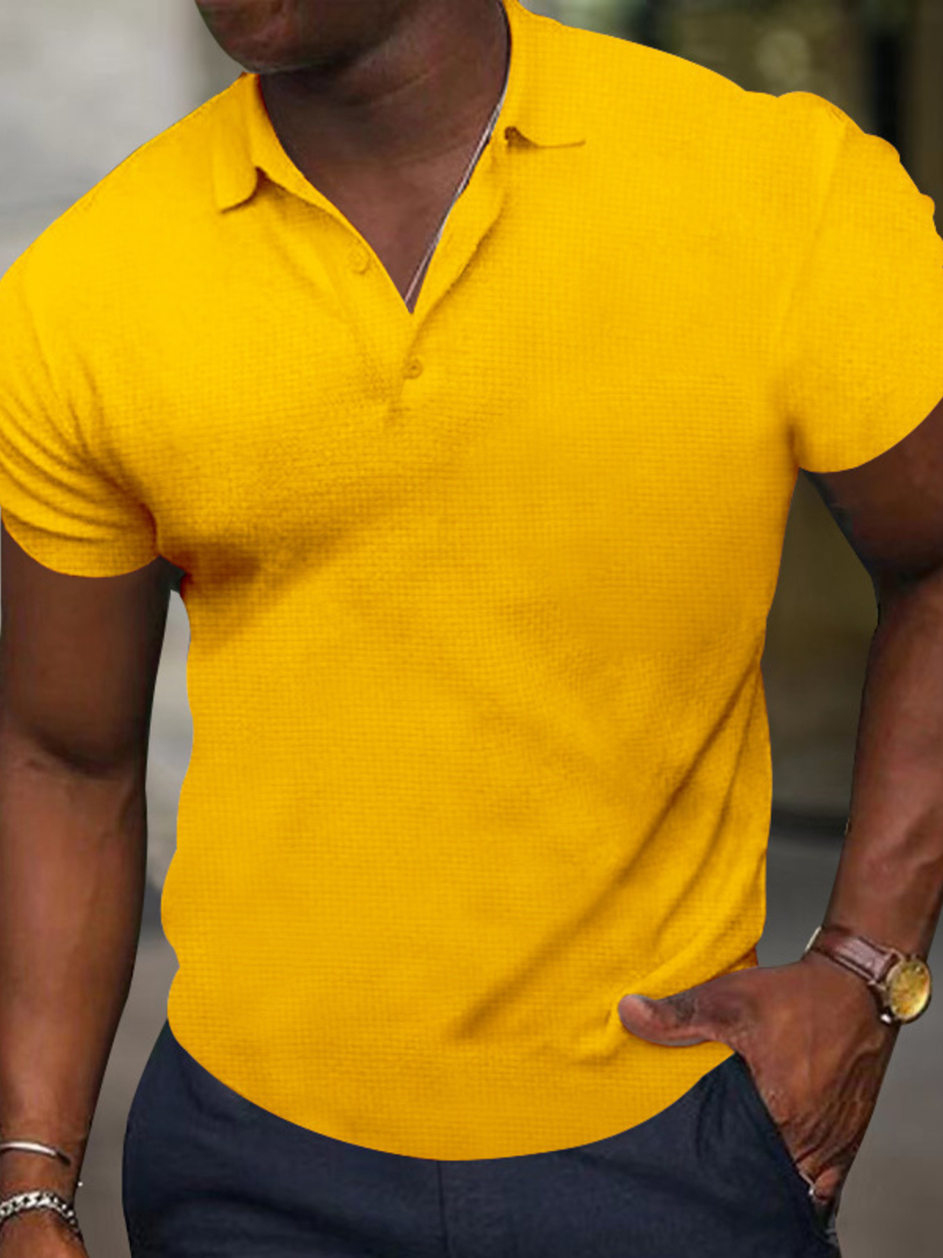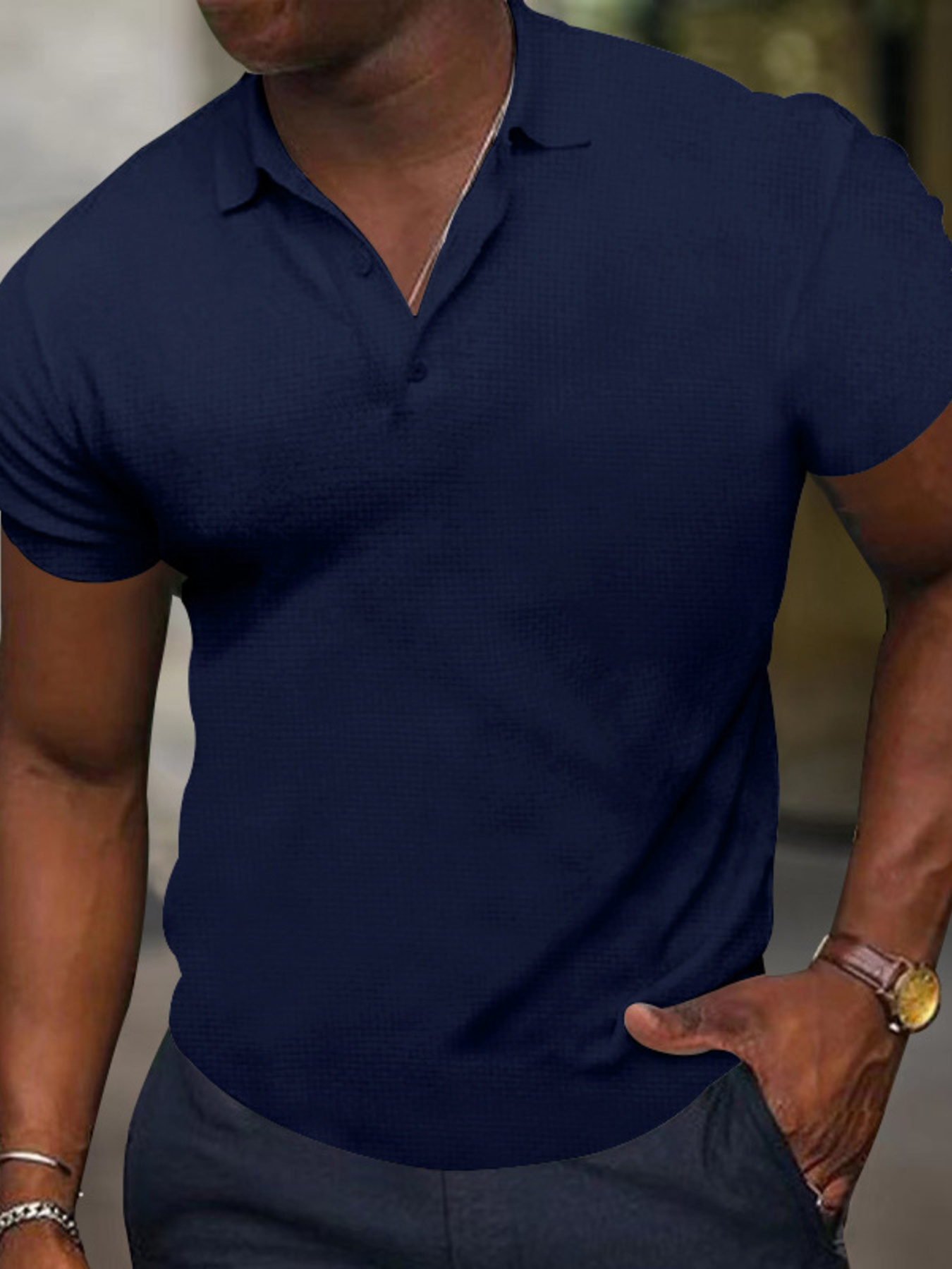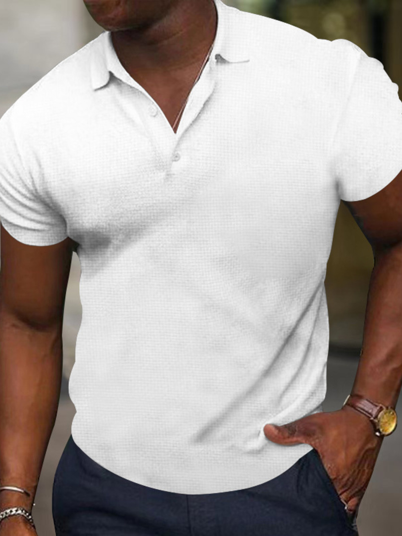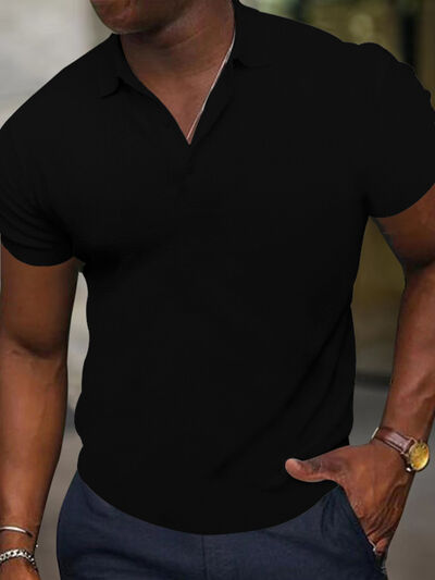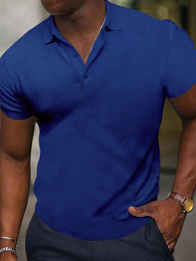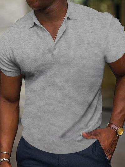 Men's Full Size Texture Short Sleeve Polo Plus Size