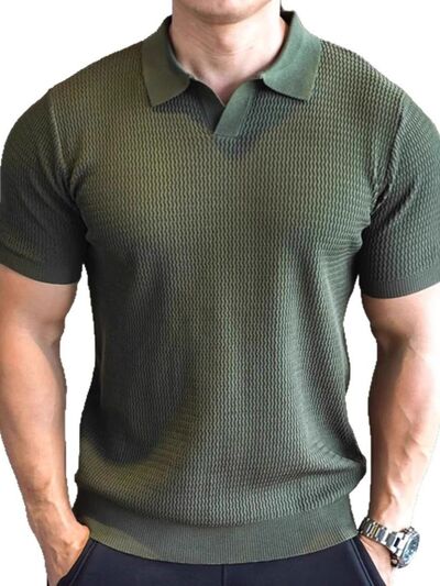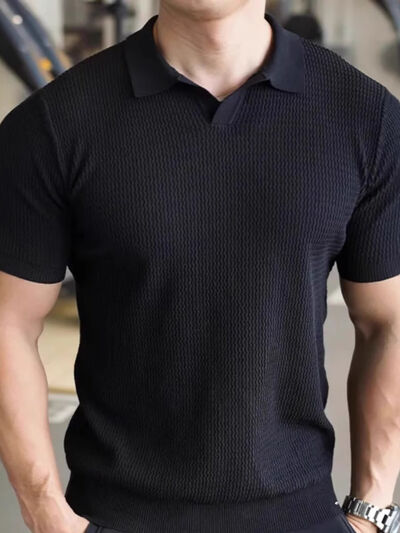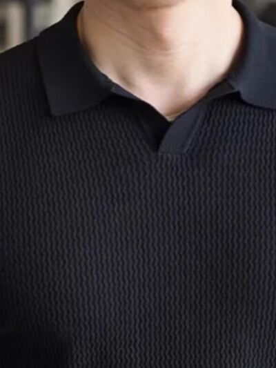 Men's Full Size Textured Knit Polo Shirt Plus Size