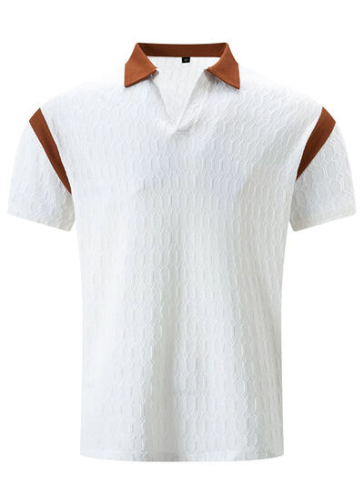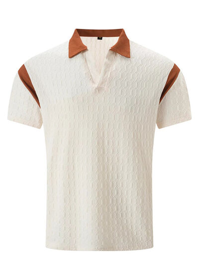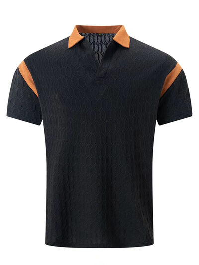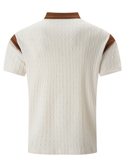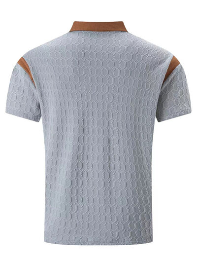 Men's Full Size Textured Short Sleeve Polo Plus Size