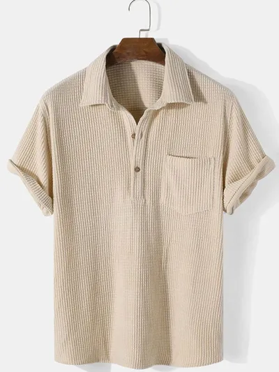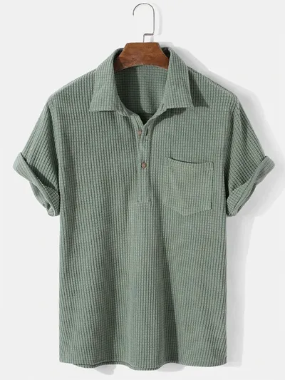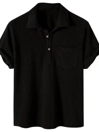 Men's Full Size Textured Short Sleeve Polo Plus Size