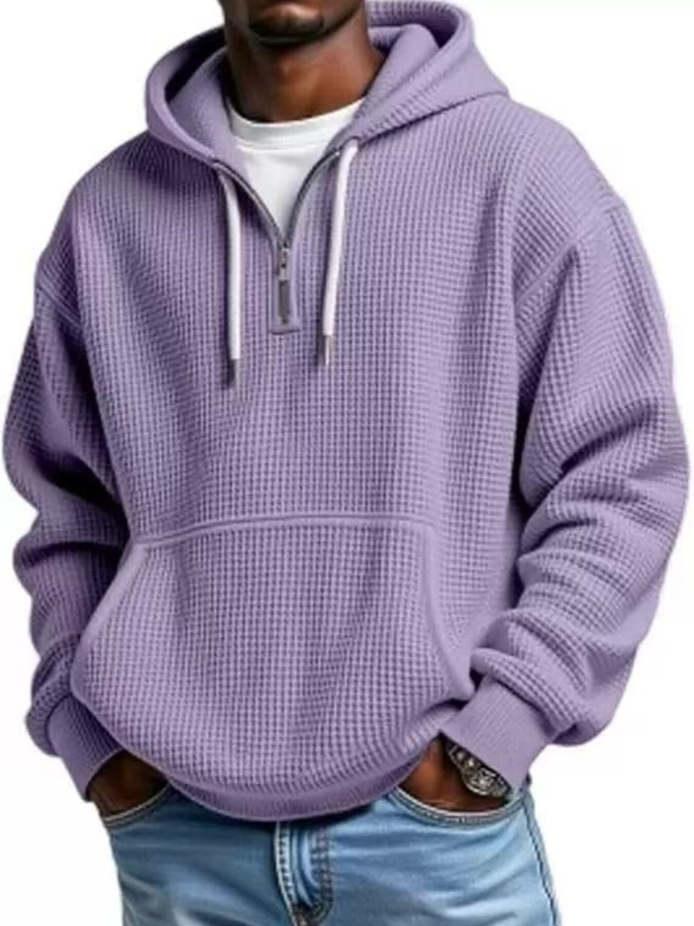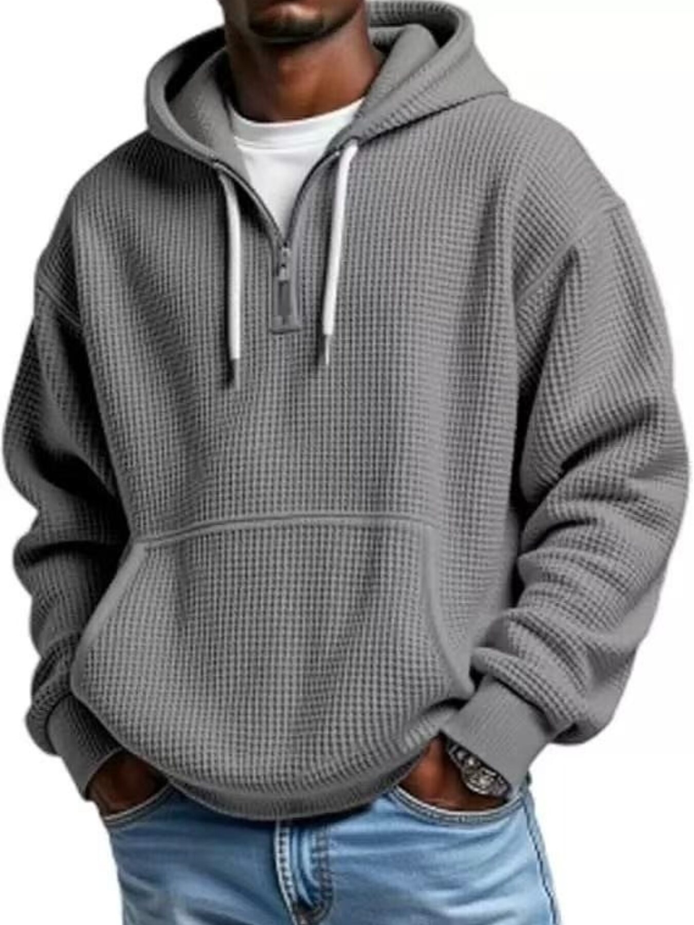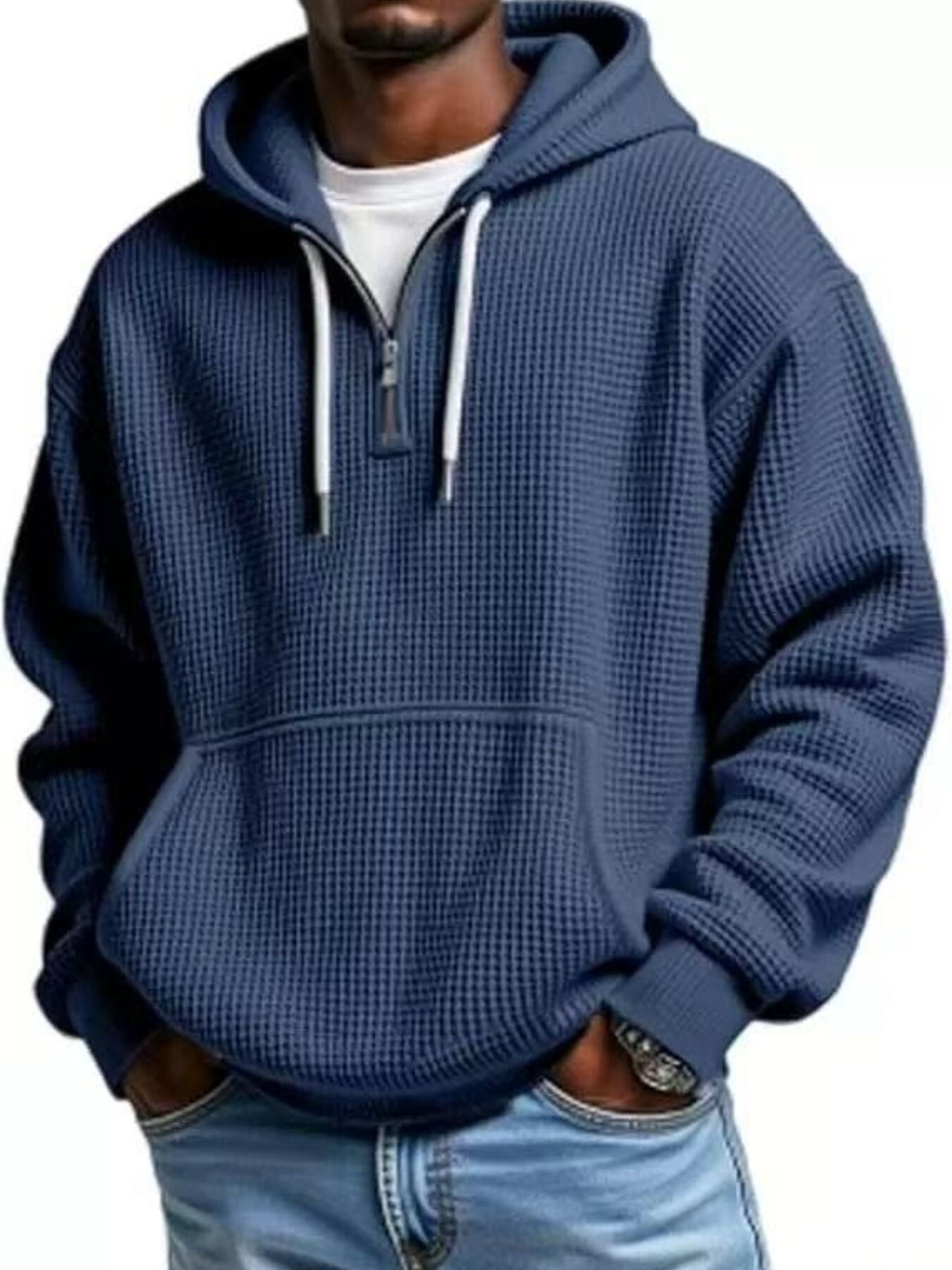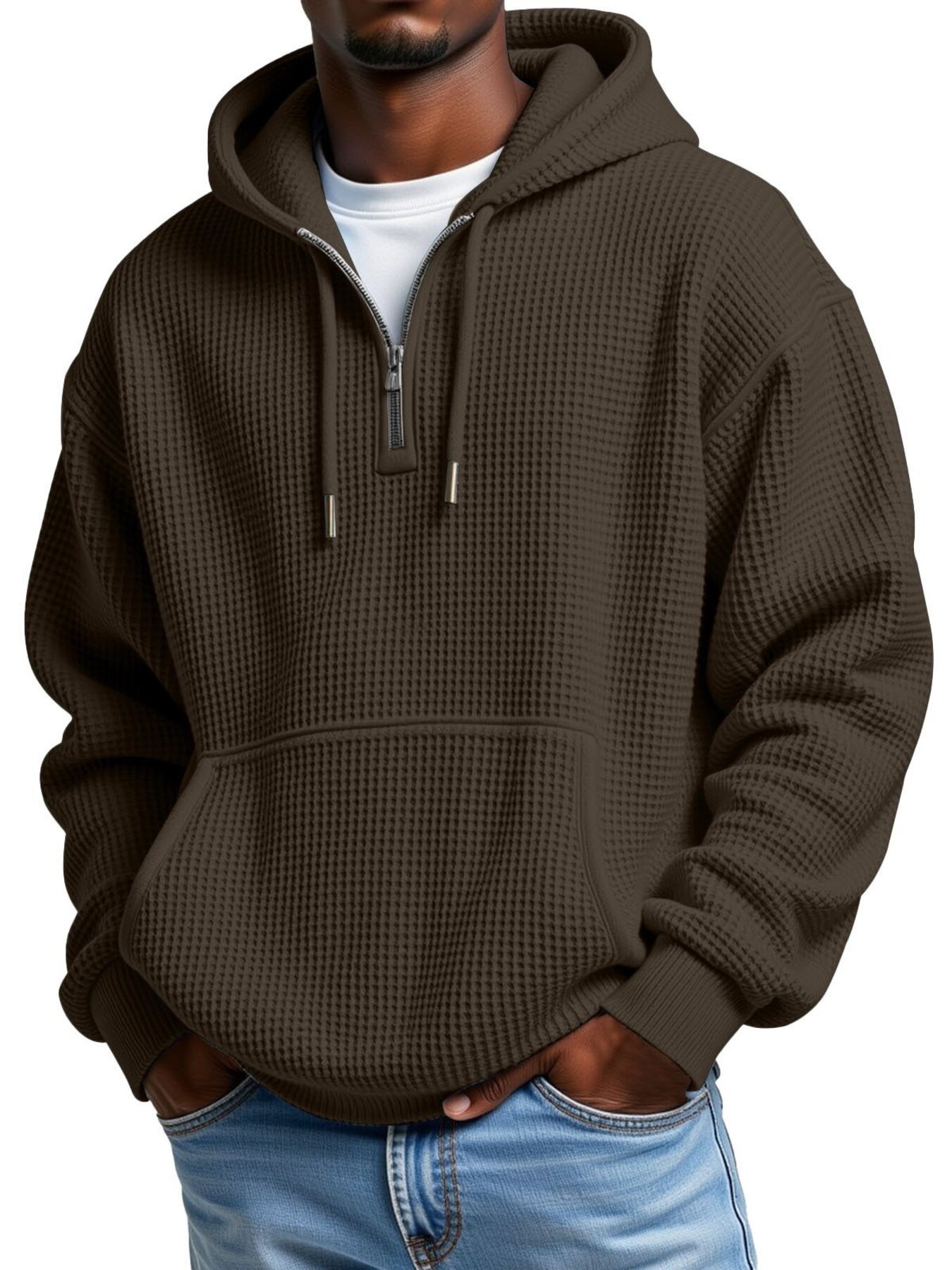 Men's Full Size Textured Waffle Knit Half-Zip Hoodie Plus Size