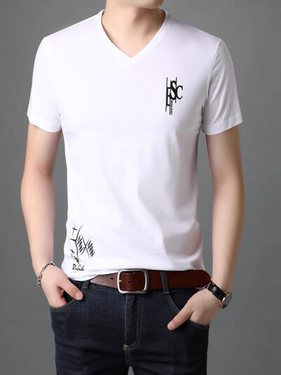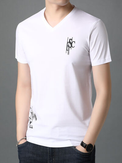 Men's Full Size V-Neck Short Sleeve T-Shirt Plus Size
