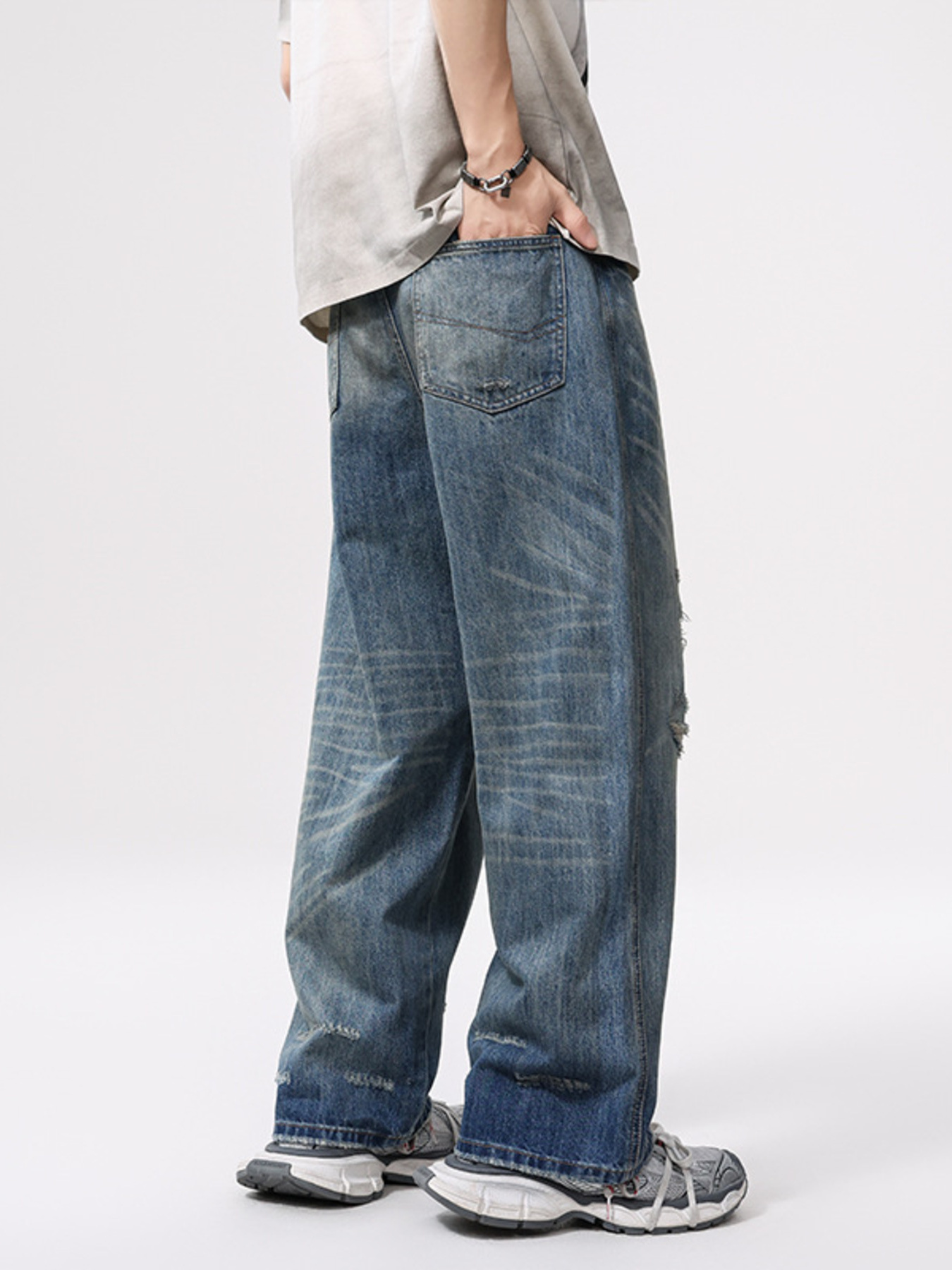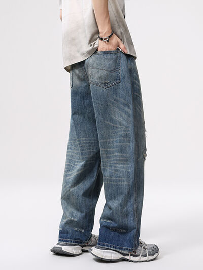 Men's Full Size Vintage Distressed Wide Leg Relaxed Fit Jeans Plus Size