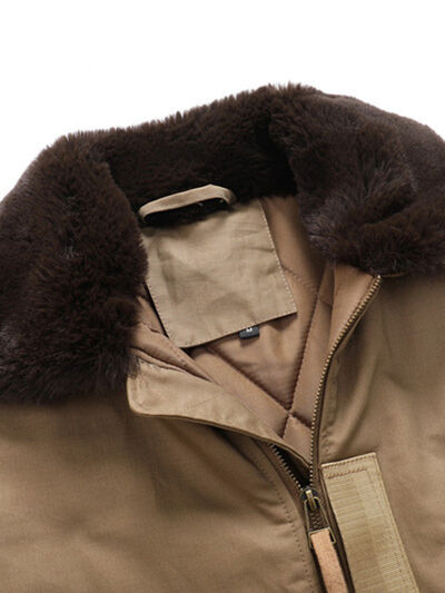 Men's Full Size Vintage Fur Collar Zip Up Jacket Plus Size