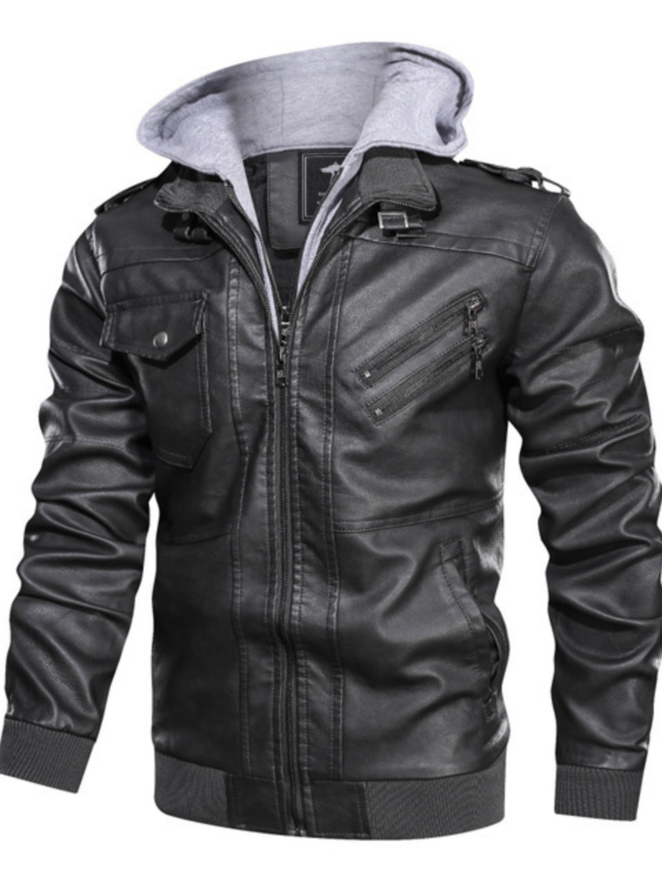 Men's Full Size Vintage Hooded Leather Jacket Plus Size