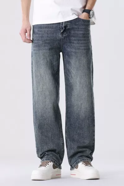 Men's Full Size Vintage Wash Relaxed Fit Straight Jeans Plus Size
