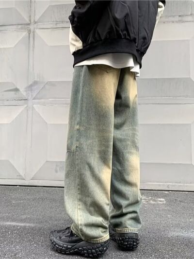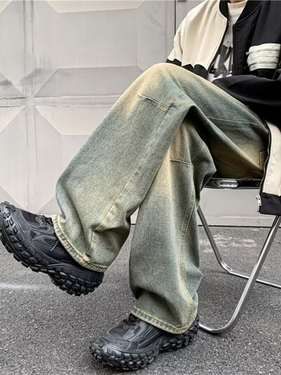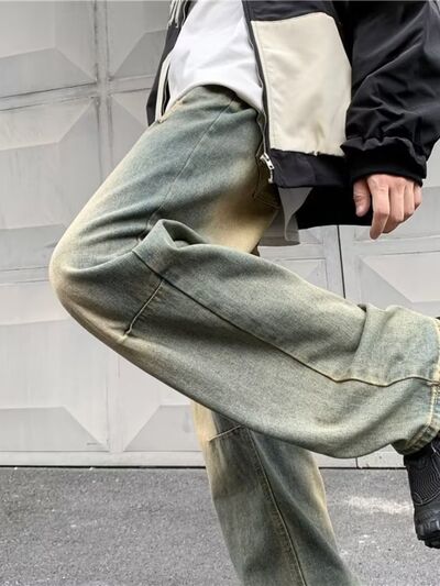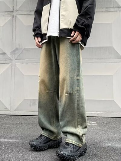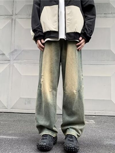 Men's Full Size Vintage Wash Ripped Wide Leg Jeans Plus Size