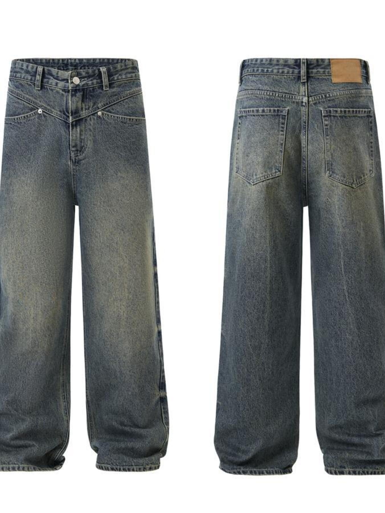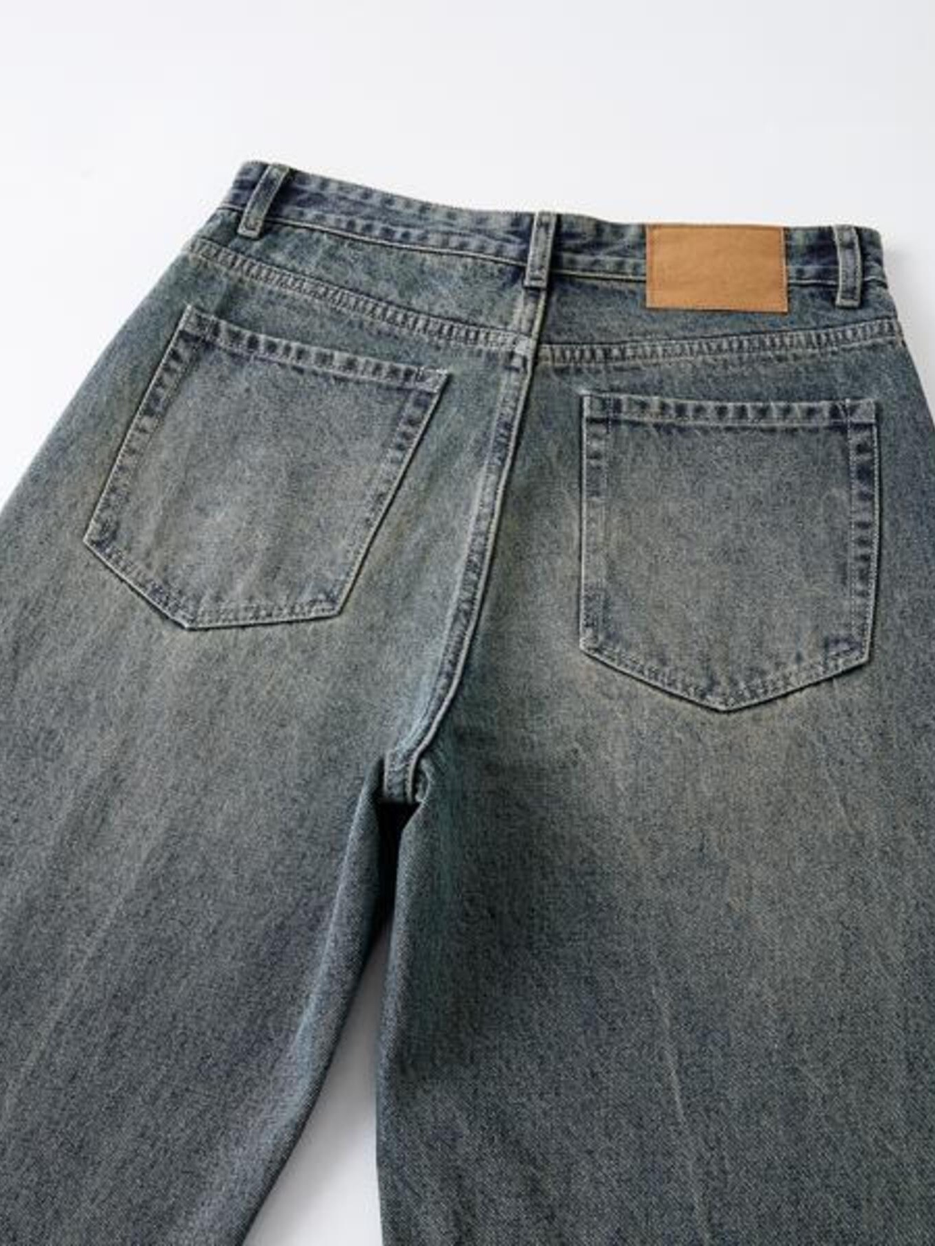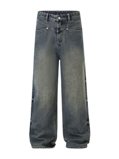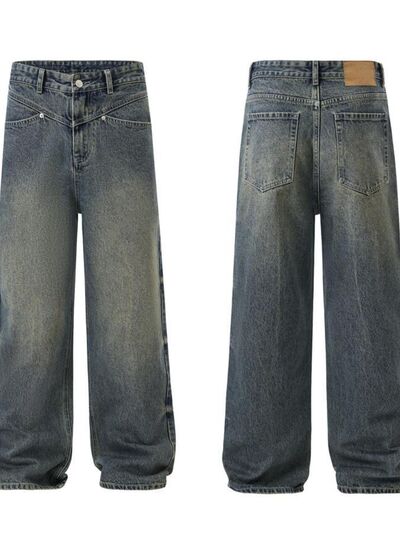 Men's Full Size Vintage Wash Wide Leg Jeans Plus Size