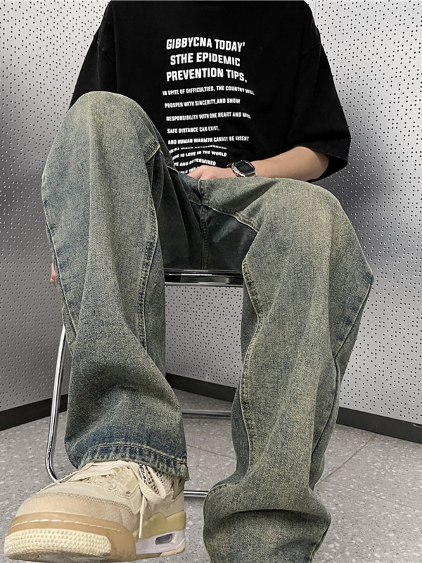 Men's Full Size Vintage Wash Wide Leg Jeans Plus Size