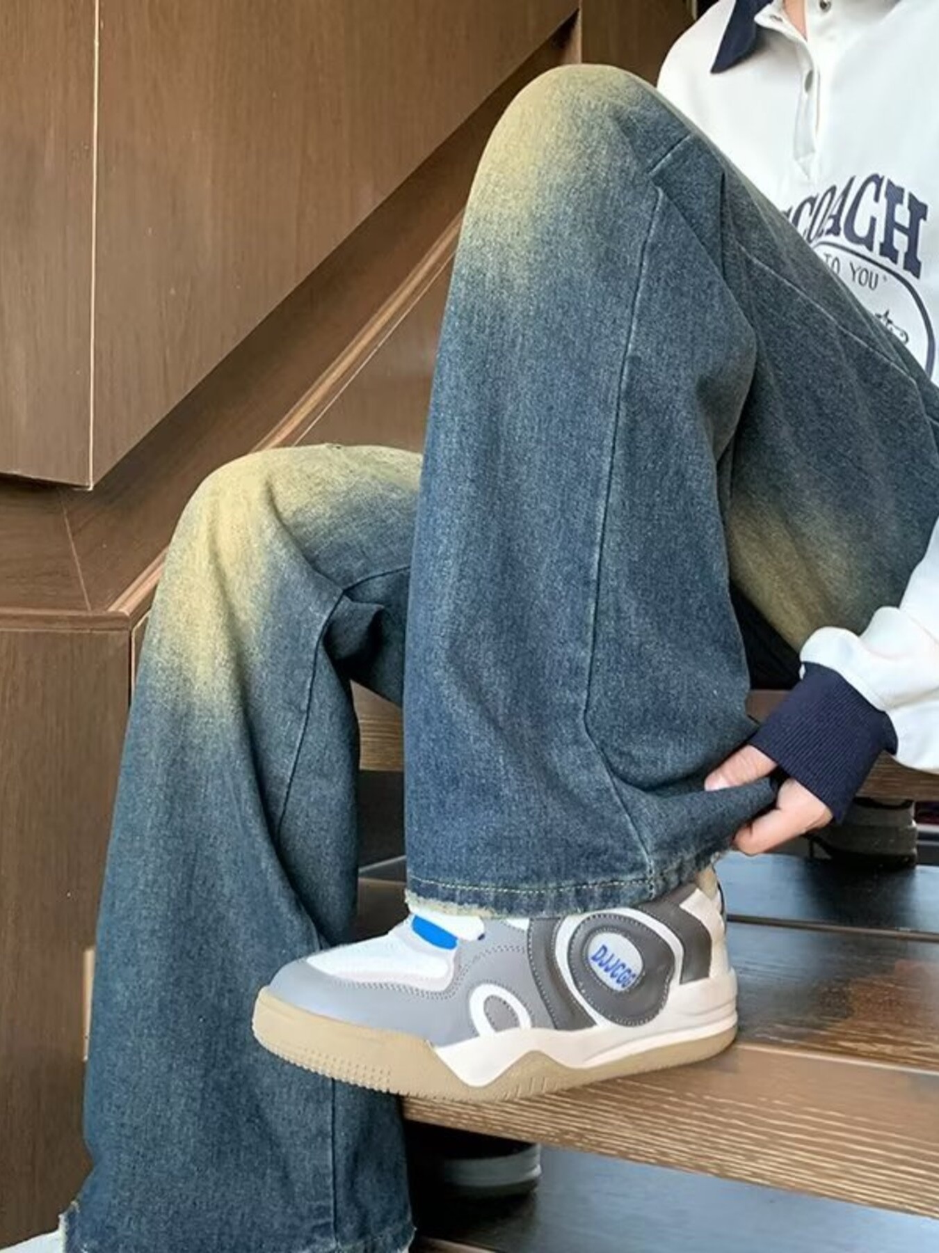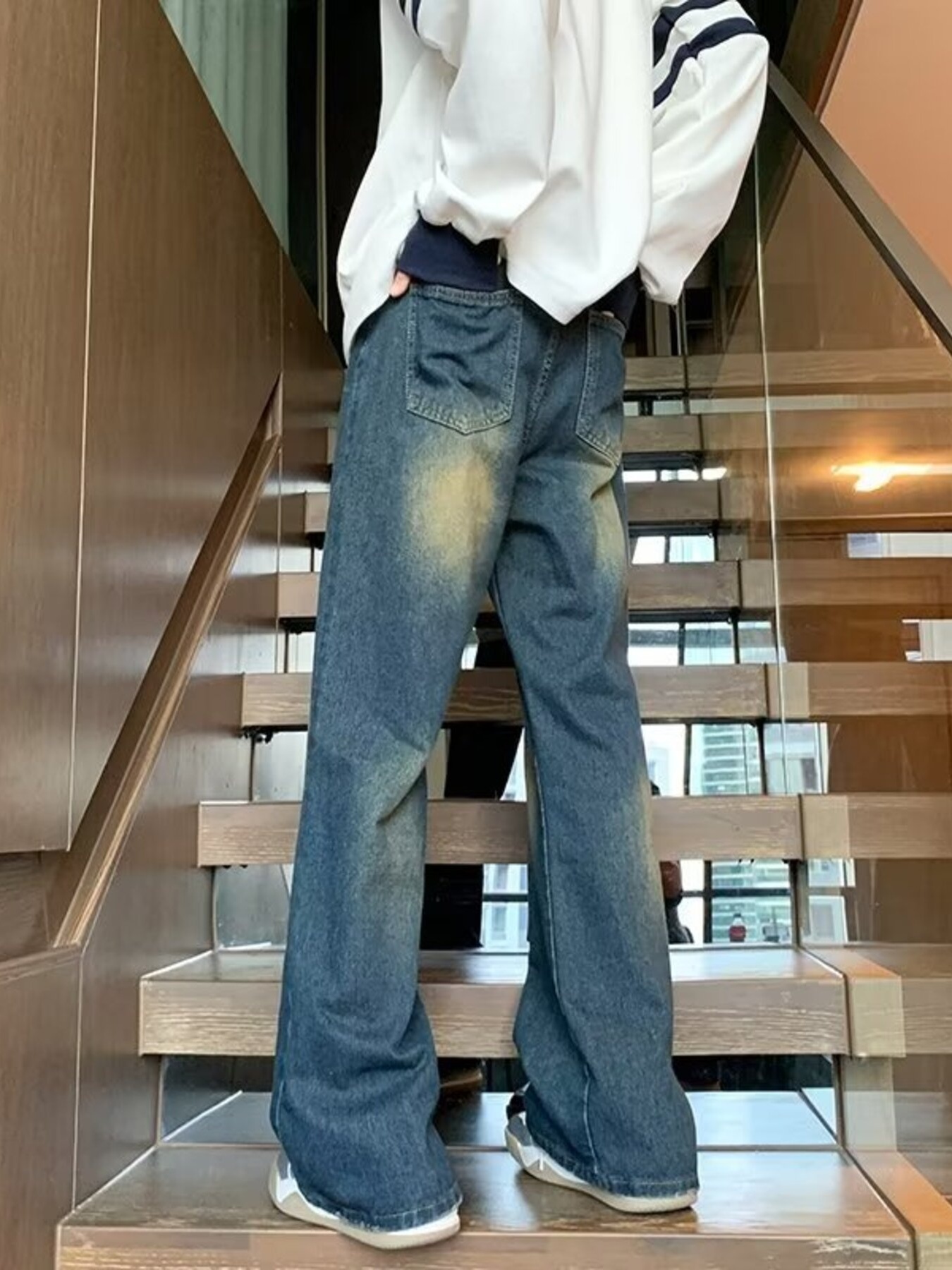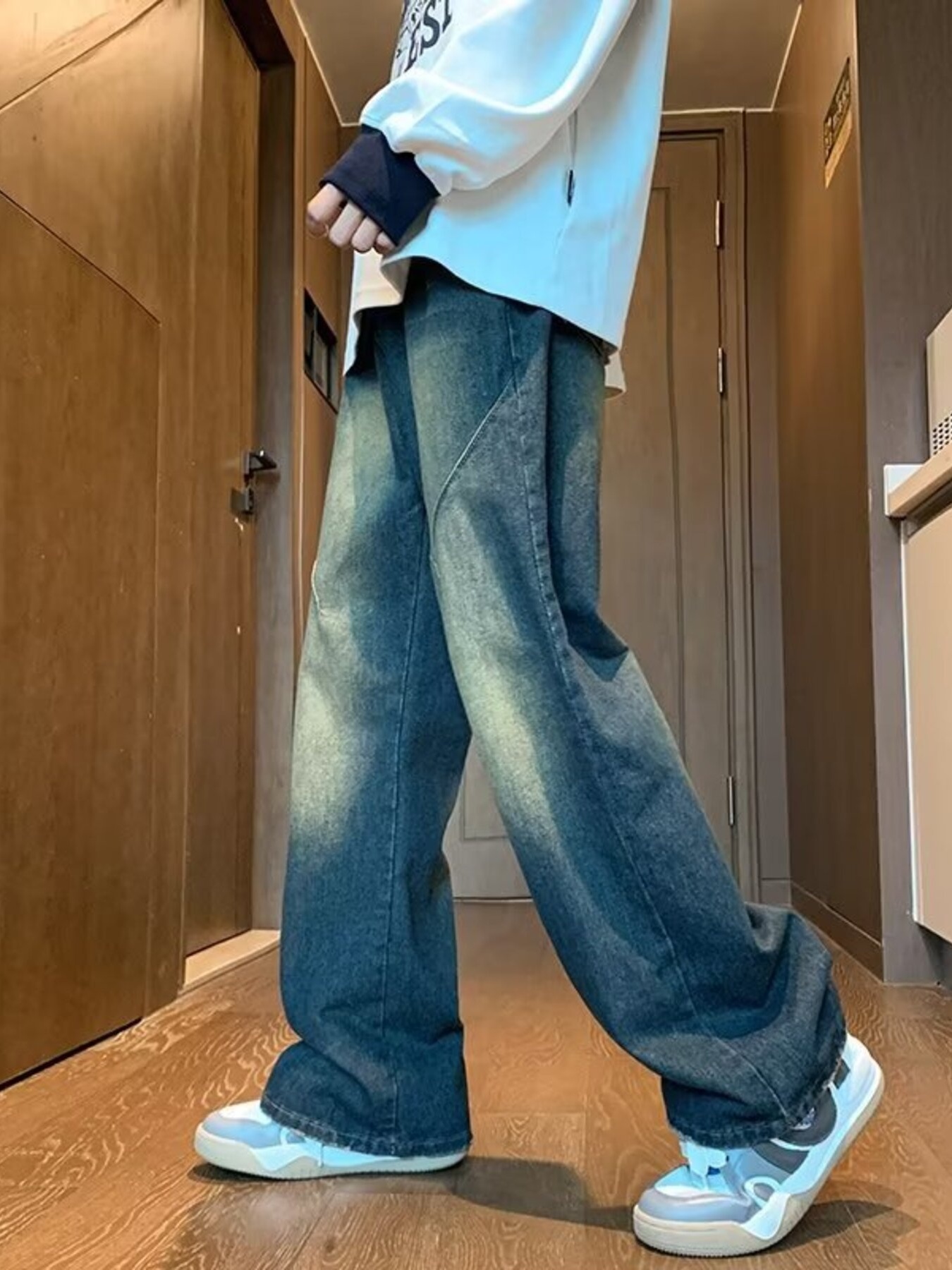 Men's Full Size Vintage Wash Wide Leg Jeans Plus Size