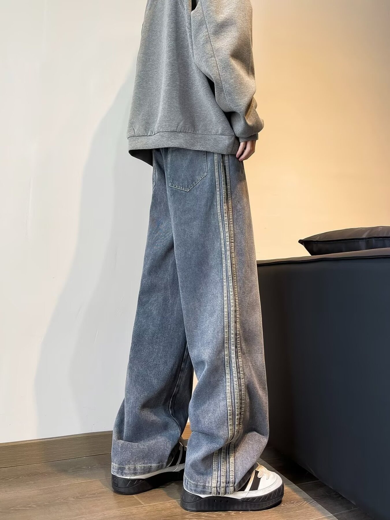 Men's Full Size Vintage Wash Wide Leg Jeans Plus Size