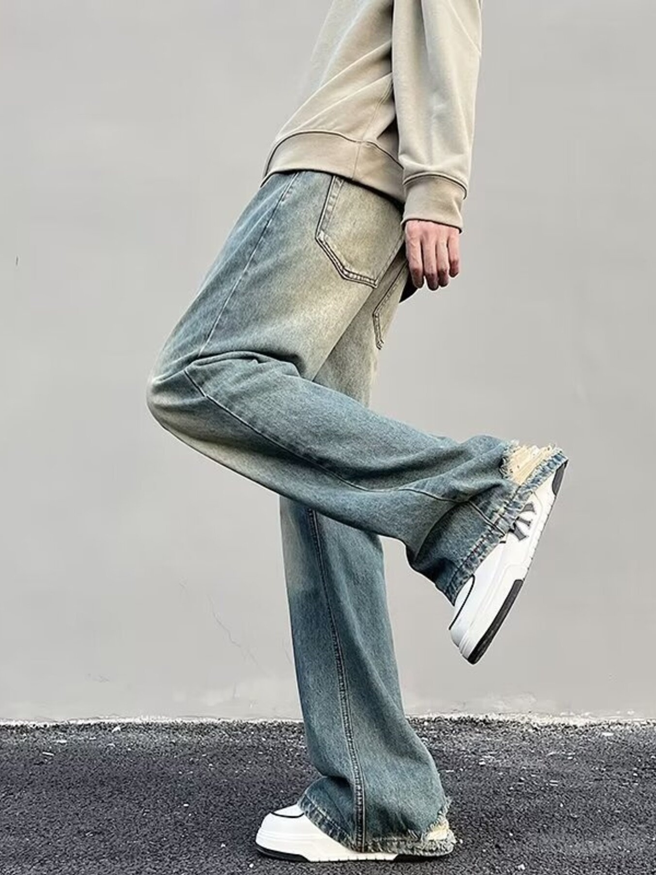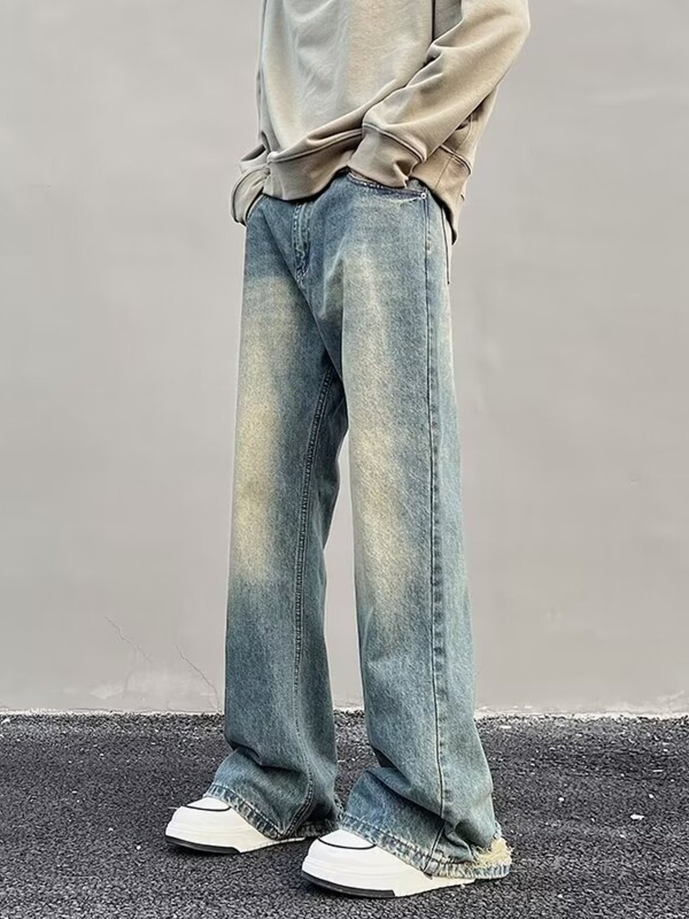 Men's Full Size Vintage Wash Wide Leg Jeans Plus Size