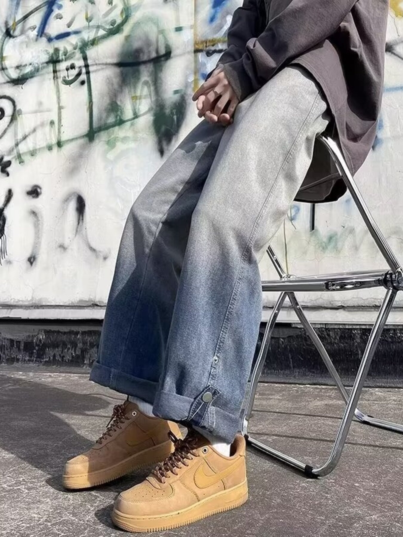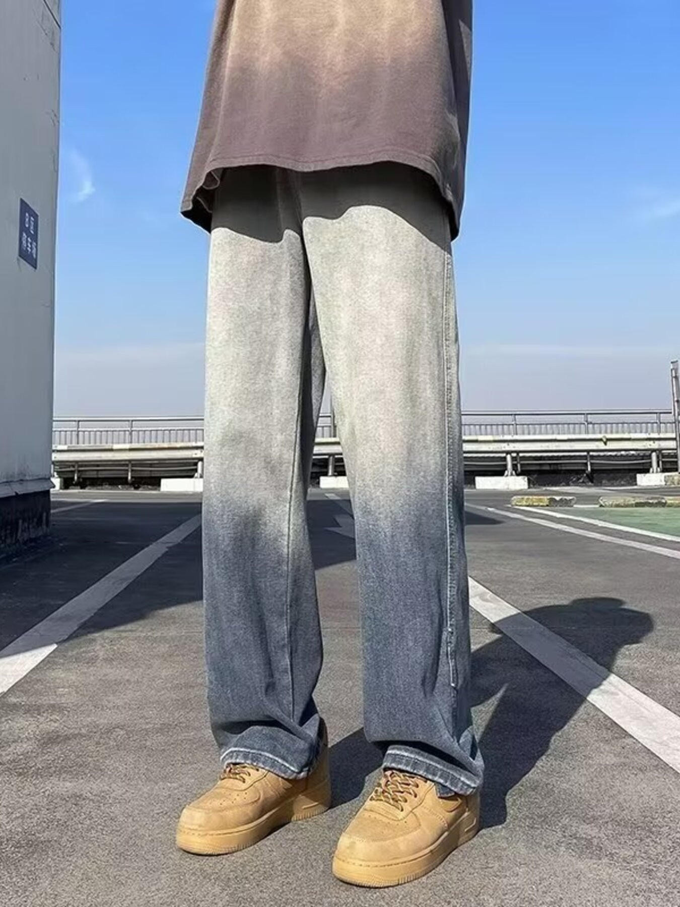 Men's Full Size Vintage Wash Wide Leg Jeans Plus Size
