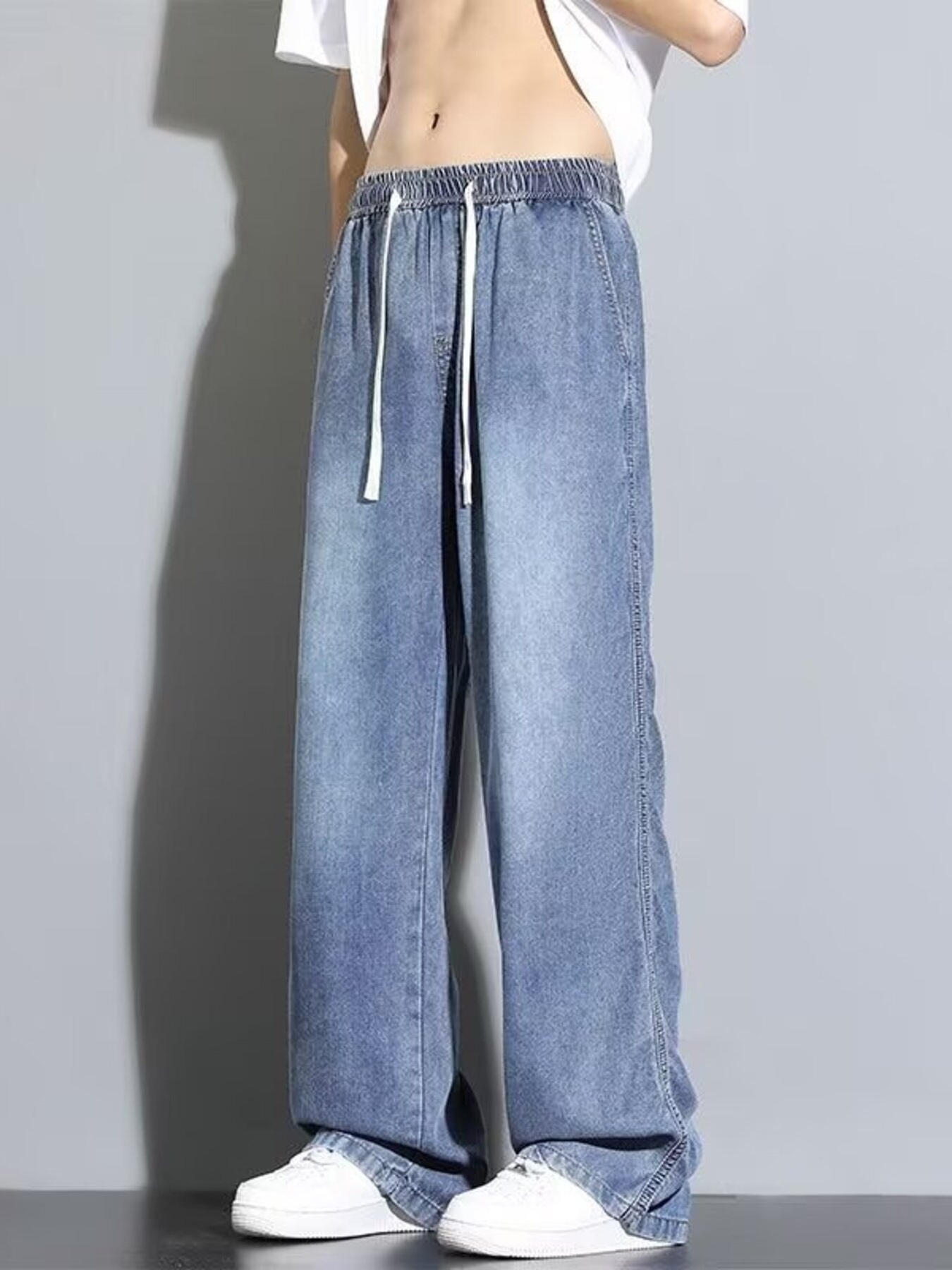 Men's Full Size Vintage Wash Wide Leg Jeans Plus Size