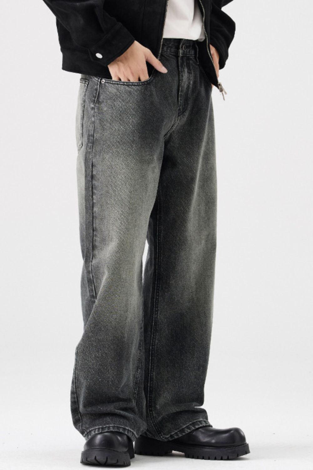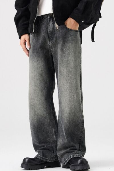 Men's Full Size Vintage Wash Wide Leg Jeans Plus Size