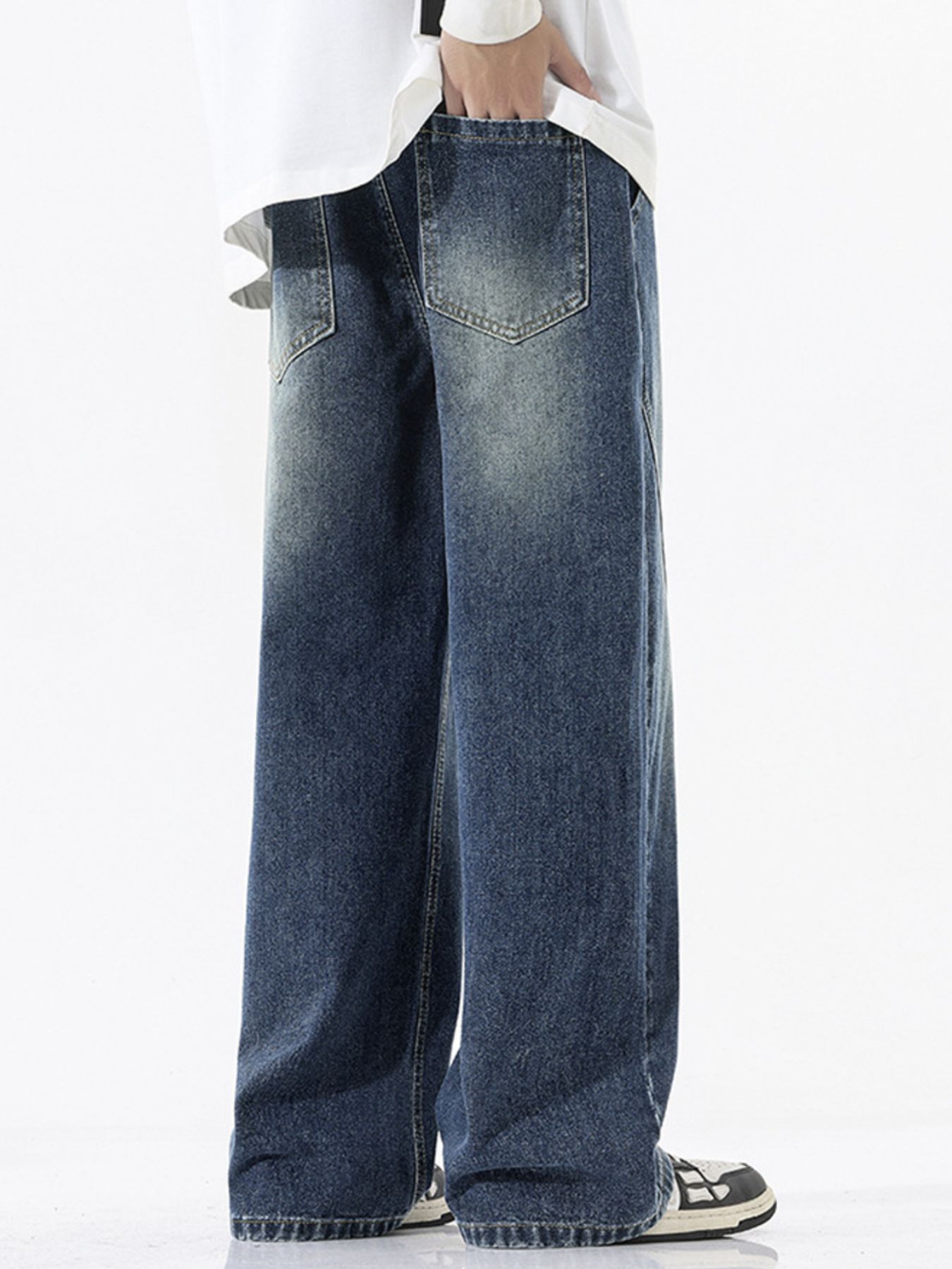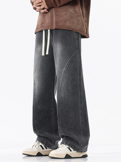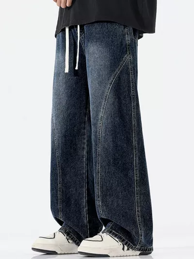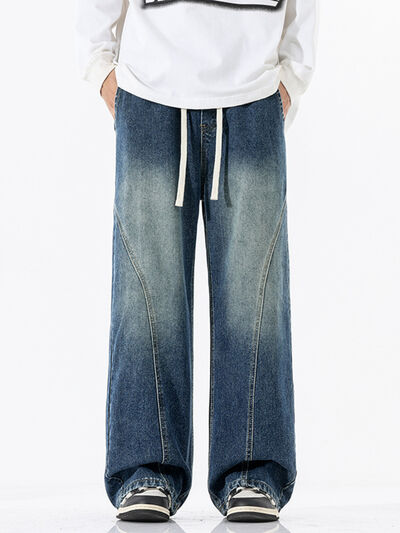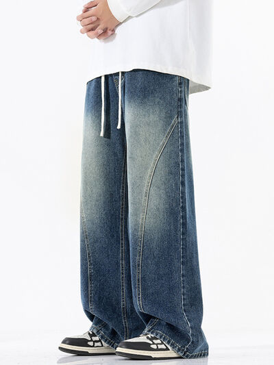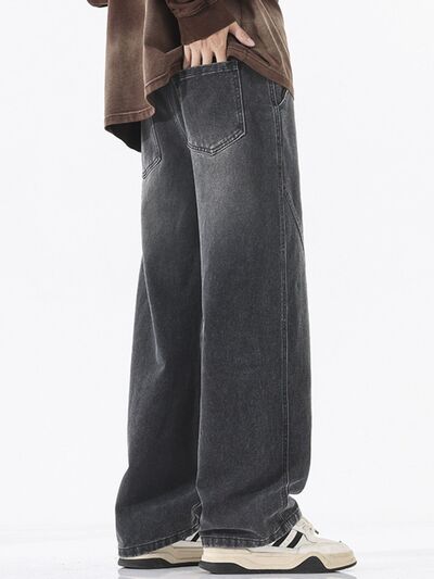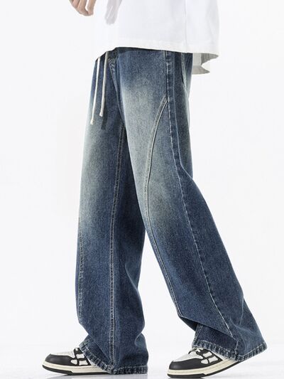 Men's Full Size Vintage Wash Wide Leg Jeans Plus Size