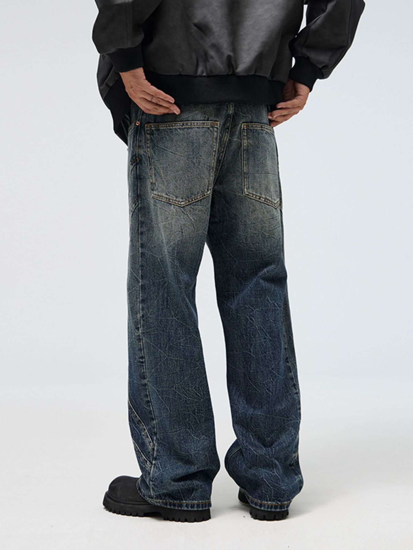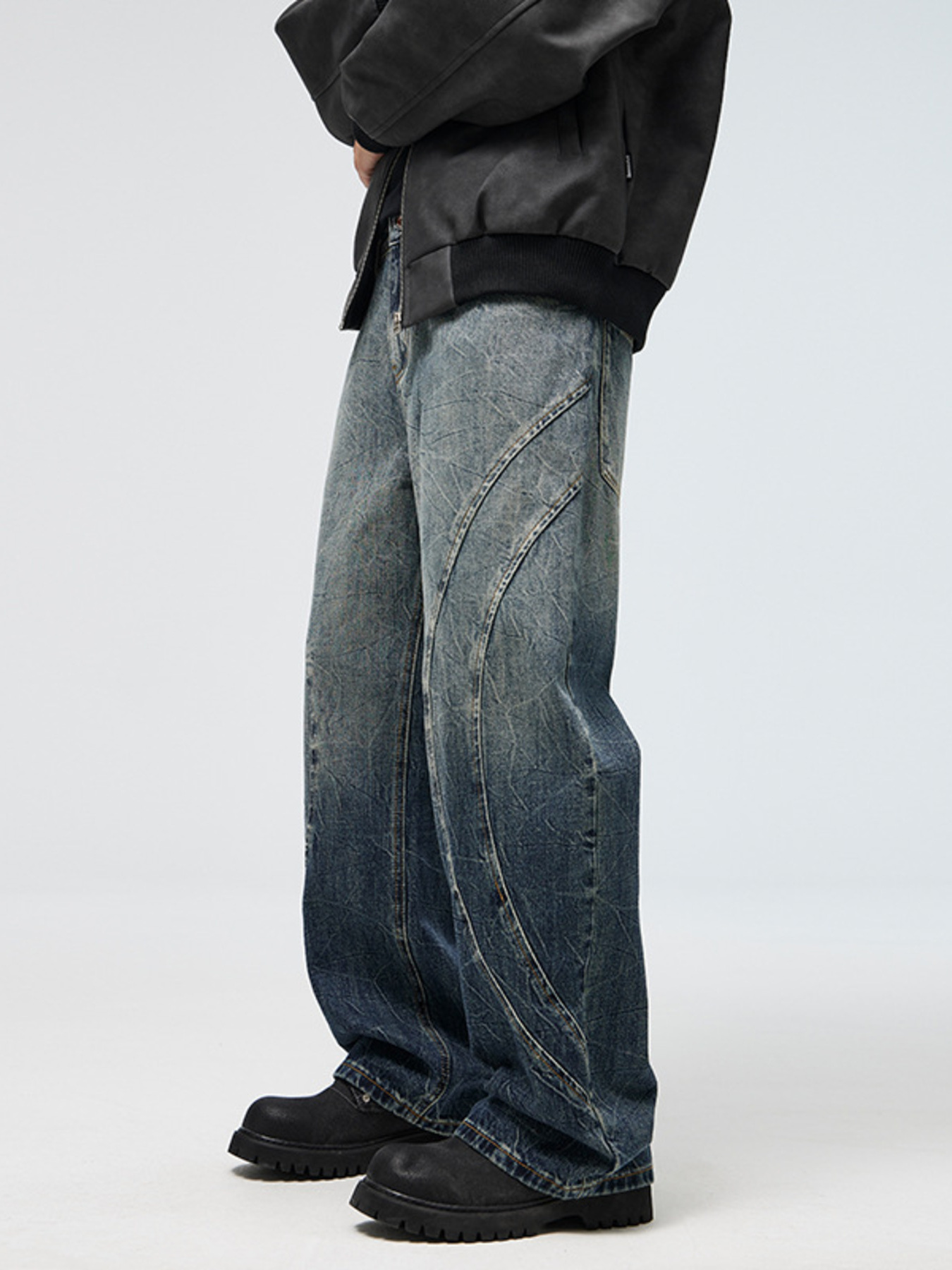 Men's Full Size Vintage Wash Wide Leg Jeans Plus Size