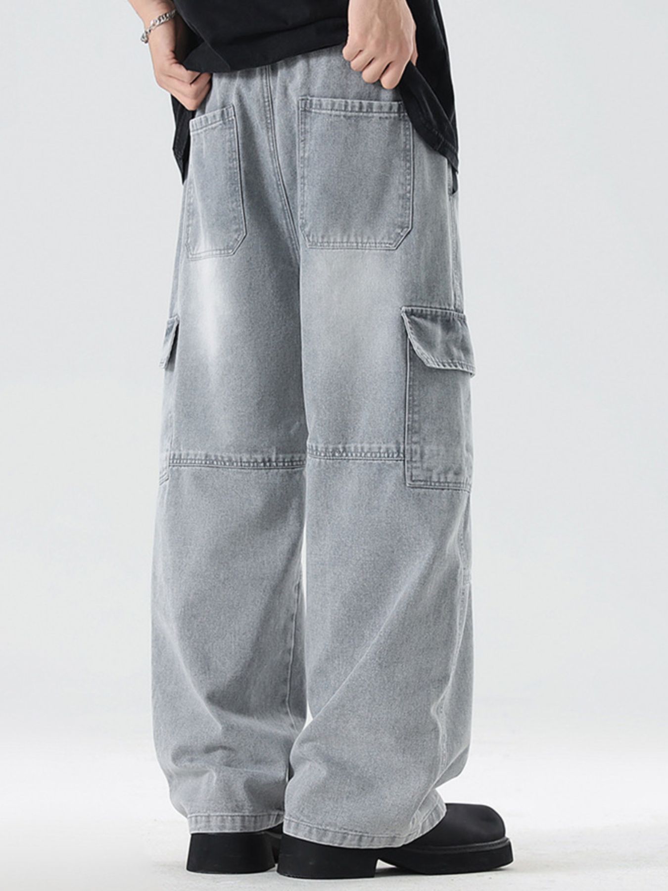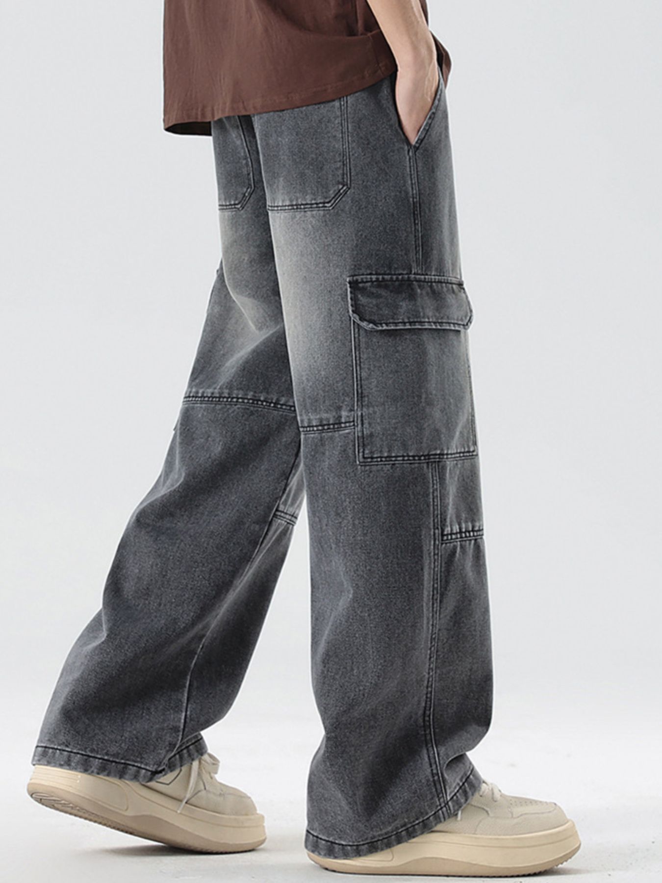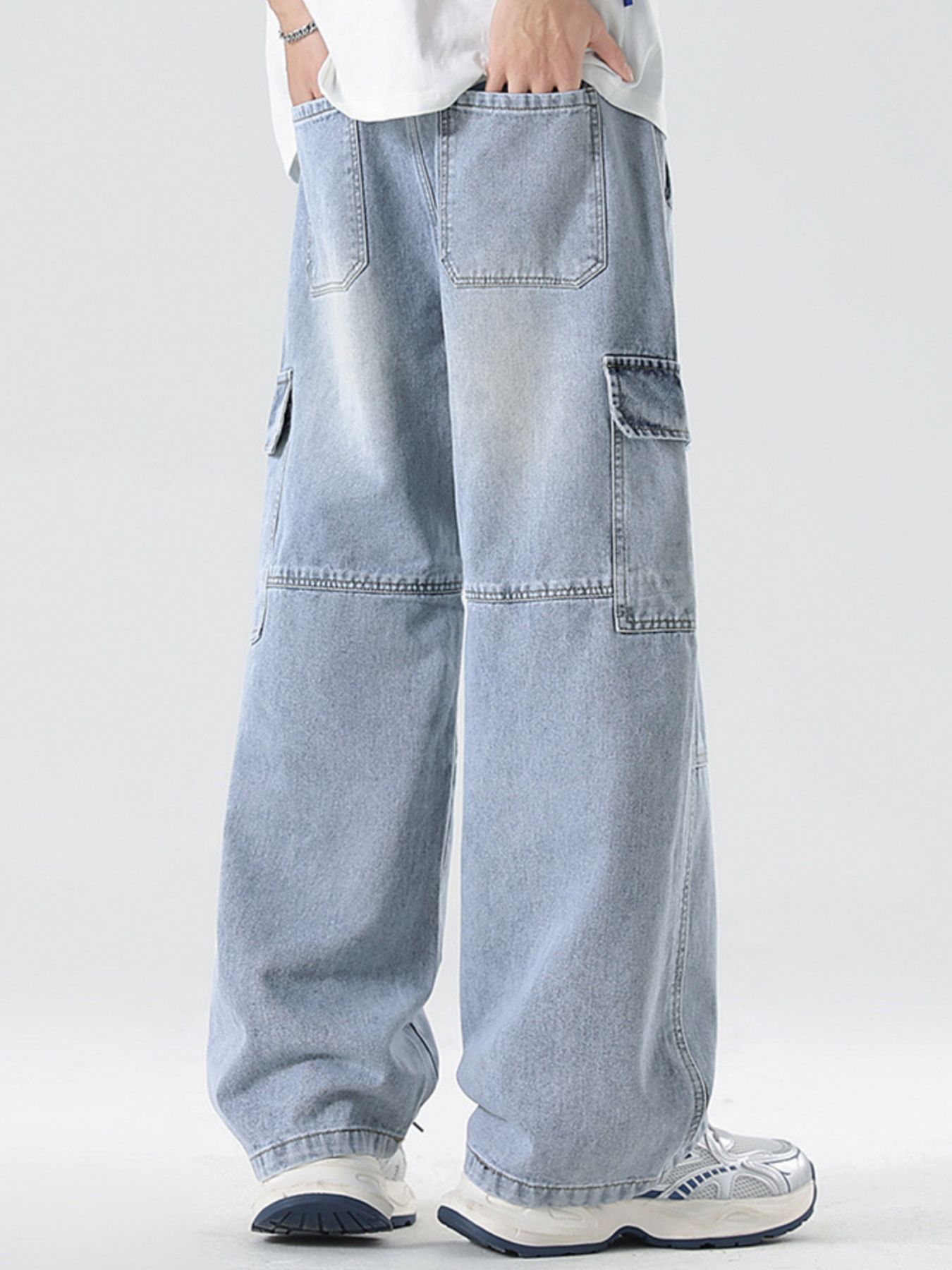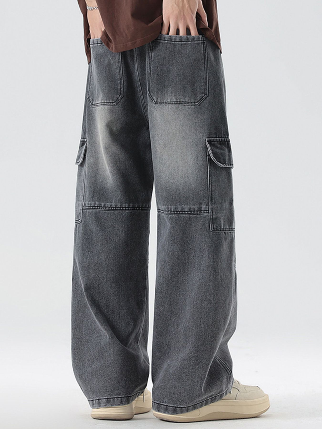 Men's Full Size Vintage Wash Wide Leg Jeans Plus Size