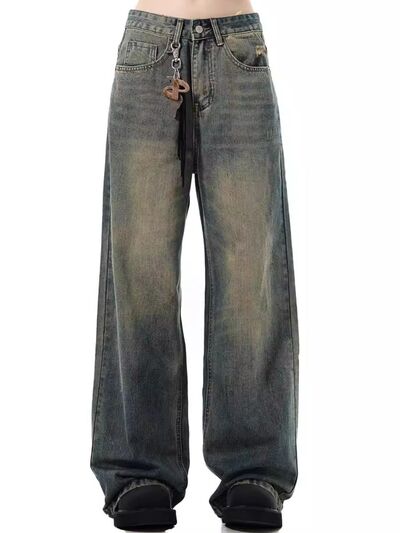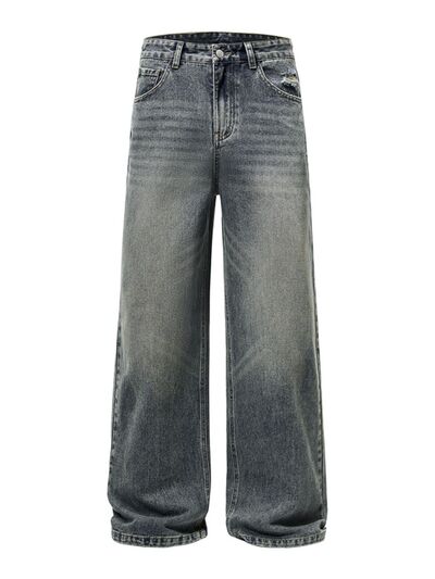 Men's Full Size Vintage Wash Wide Leg Jeans Plus Size