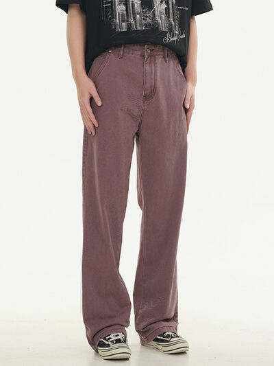 Men's Full Size Vintage Wash Wide Leg Jeans Plus Size