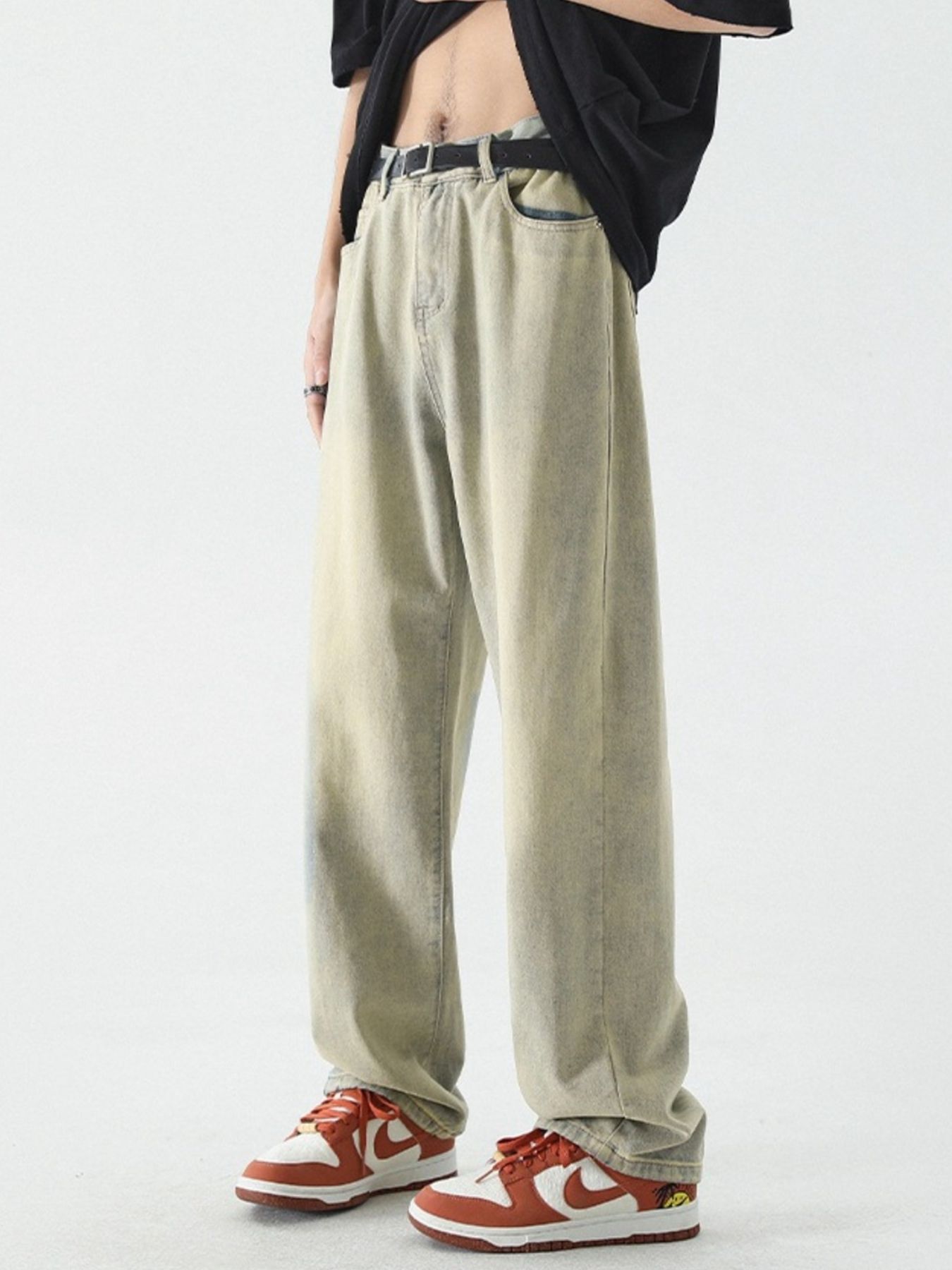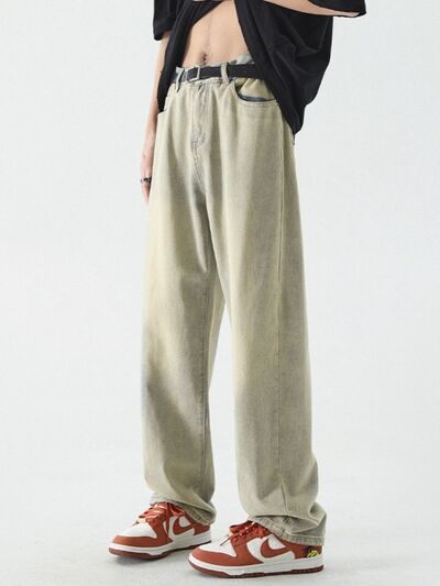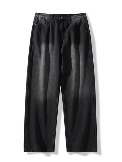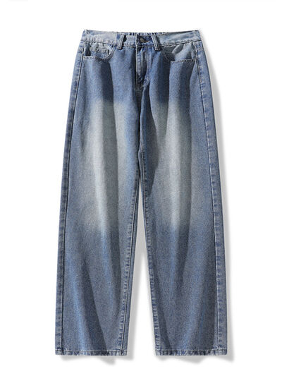 Men's Full Size Vintage Wash Wide Leg Jeans Plus Size