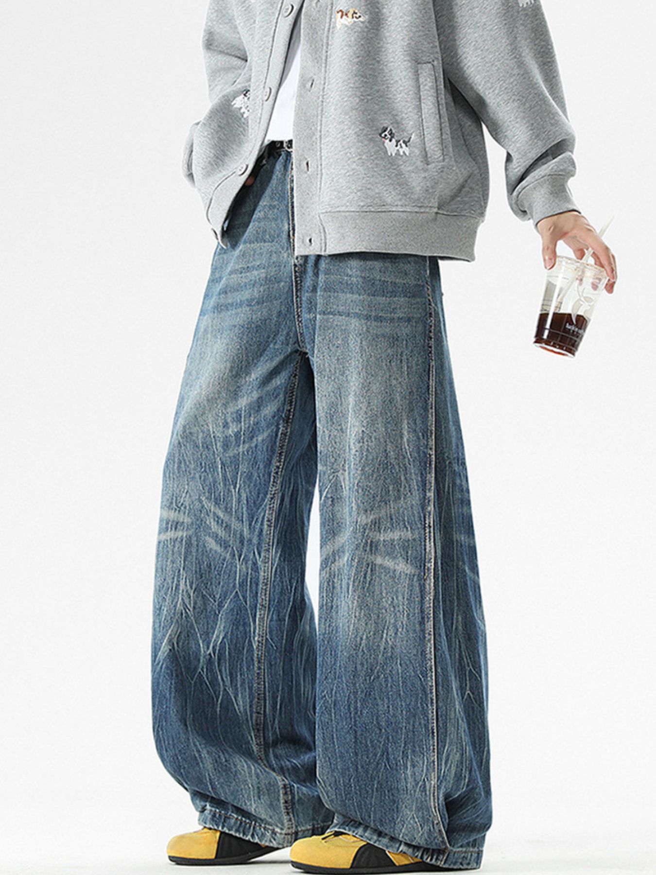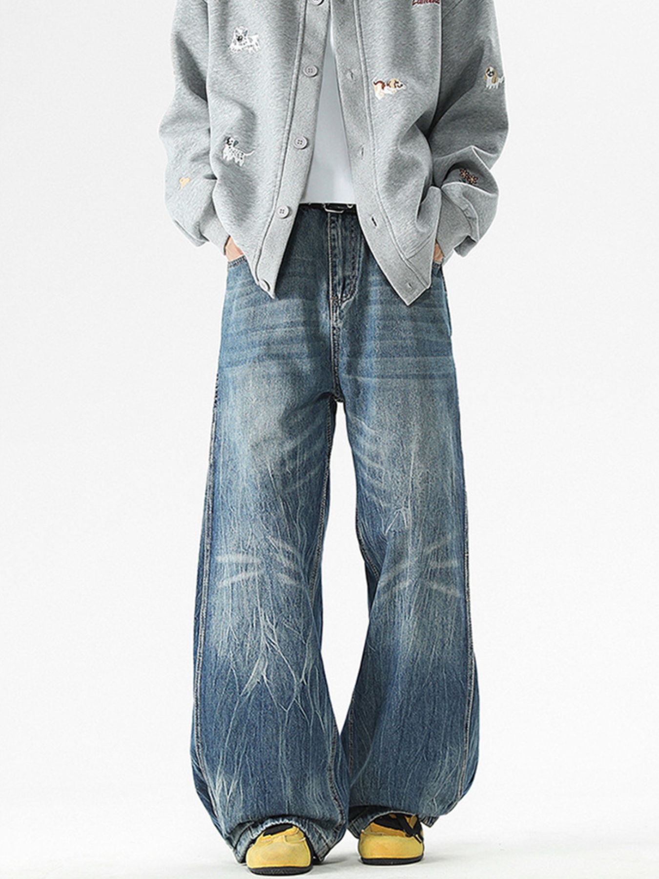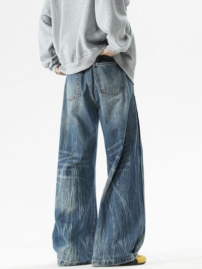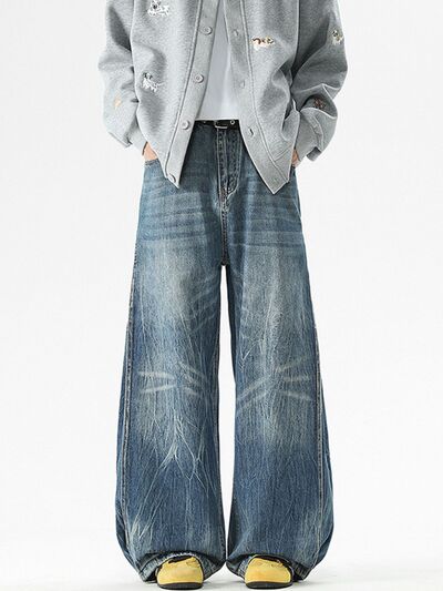 Men's Full Size Vintage Wash Wide Leg Jeans Plus Size