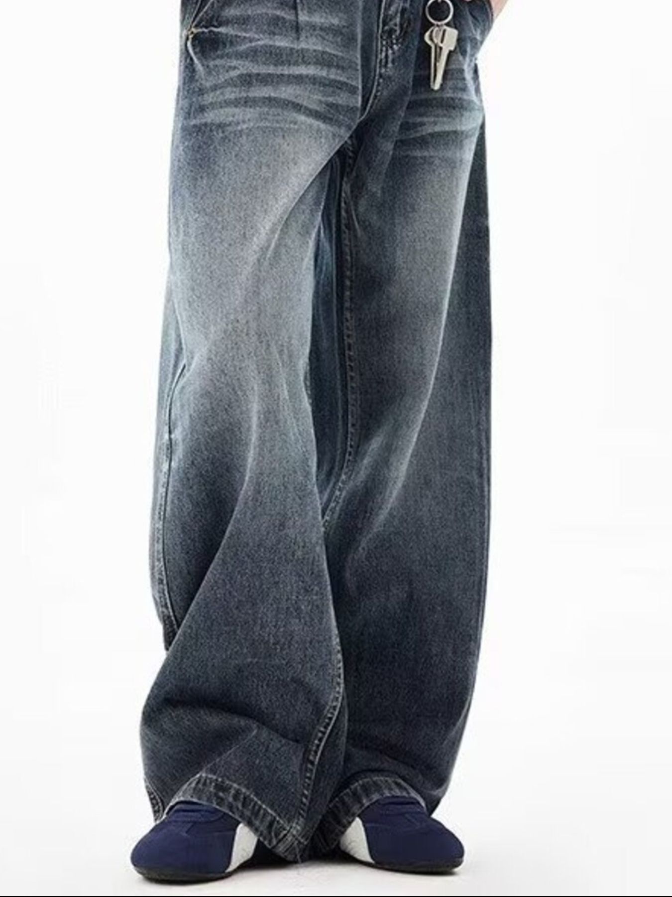 Men's Full Size Vintage Wash Wide Leg Jeans Plus Size