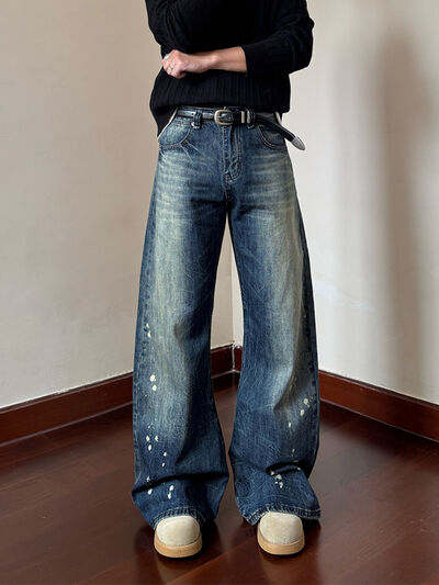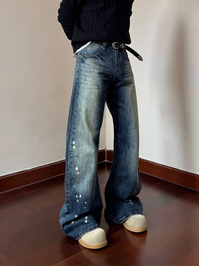 Men's Full Size Vintage Wash Wide Leg Jeans Plus Size