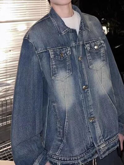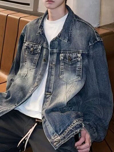 Men's Full Size Vintage Washed Denim Jacket Plus Size