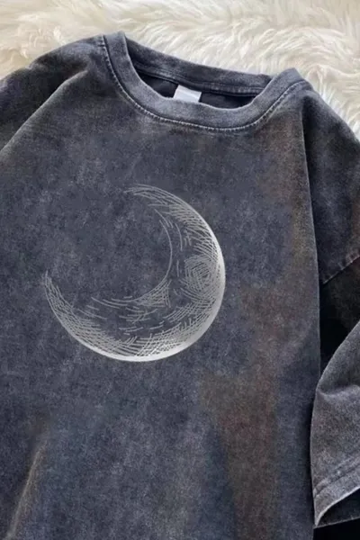 Men's Full Size Vintage Washed Moon Graphic T-Shirt Plus Size