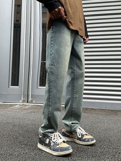 Men's Full Size Vintage Washed Straight Leg Relaxed Fit Jeans Plus Size