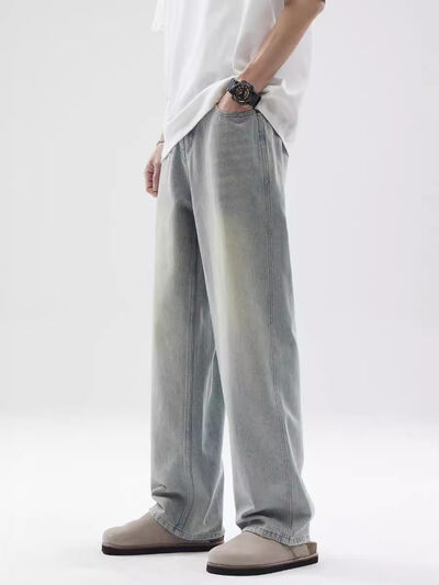 Men's Full Size Vintage Washed Wide Leg Relaxed Fit Jeans Plus Size