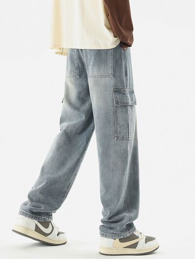 Men's Full Size Wash Relaxed Fit Cargo Jeans Plus Size