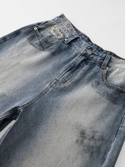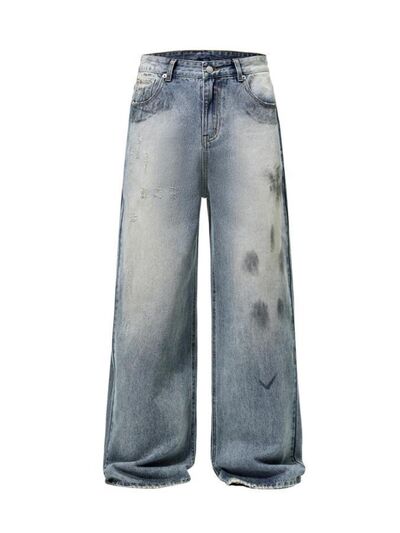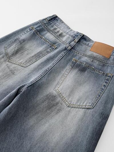 Men's Full Size Wash Wide Leg Jeans Plus Size
